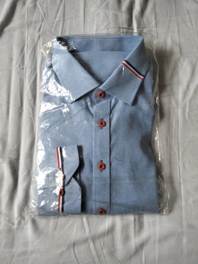 Заказано 1.03.21, доставлено 16.03.21 в объединённой посылке, получал в маг. Пятёрочка, рубашка в притык, на повседневку пойдёт.