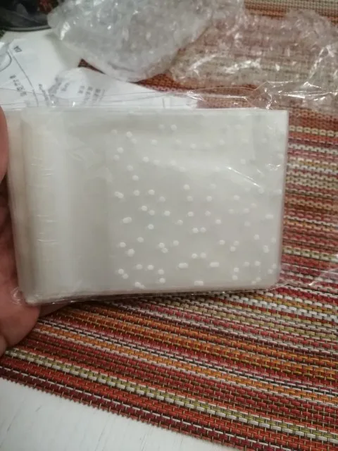 Отличный продукт. Получил в течение 3 недель с момента заказа. Точно так же, как показано на фотографиях. Я планирую использовать пакеты для обертывания печенья ручной работы. Купил бы снова. Рекомендуется! Спасибо продавцу!
