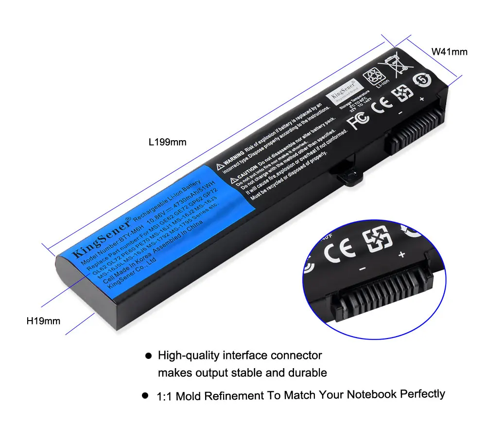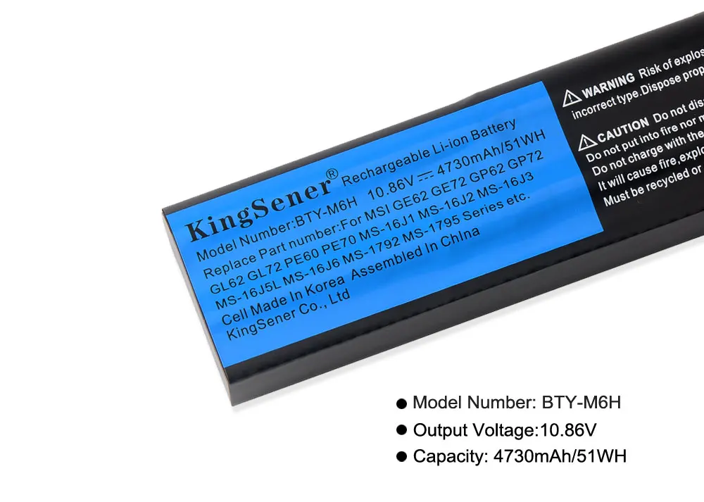 Аккумулятор KingSener BTY-M6H для ноутбука MSI GE62, GE72, GP62, GP72, GL62, GL72, GP62VR, GP72VR, PE60, PE70, MS-16J2, MS-16J3, MS-1792 MS-1795