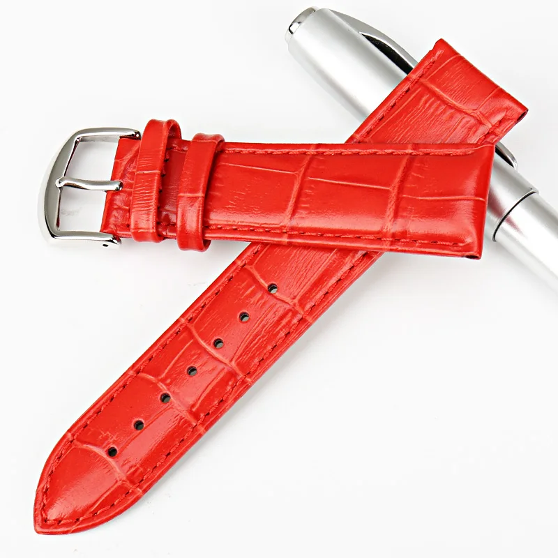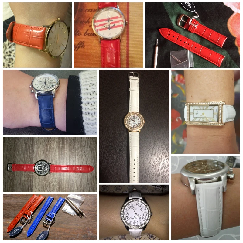 Ремешок MAIKES из натуральной кожи для наручных часов, белый красны...