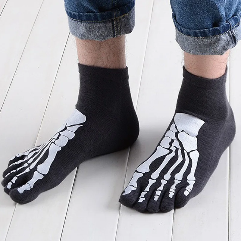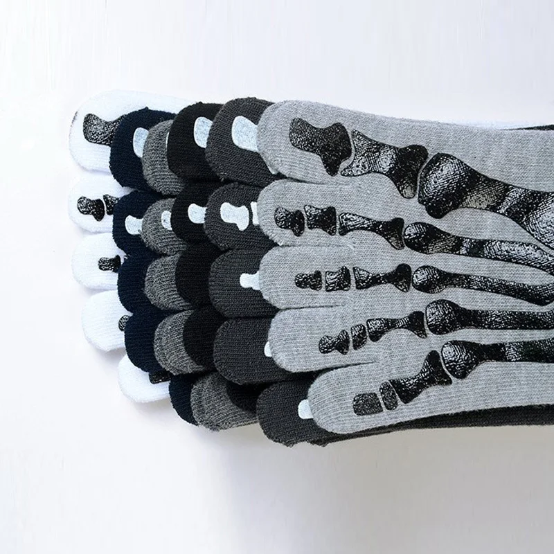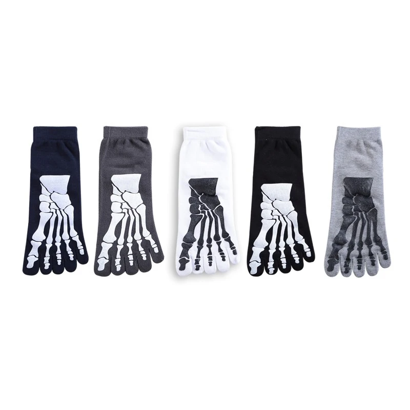 5 видов цветов, панк-рок, унисекс, 3D принт, ужас, скелет, носочки, хип-хоп, страшный череп, пять пальцев, нечетные, с костями, короткие носки