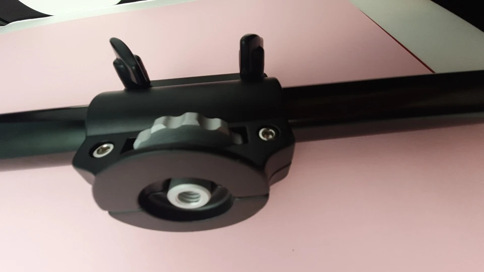 Same issue as before, the extension arm to make photos from above comes with a screw that is uncompatible with my two tripods. I had to separately purchase the screw adaptors to be able to use it ... looks sturdy anyhow, surely holding the weight of a Nikon d750 + lenses