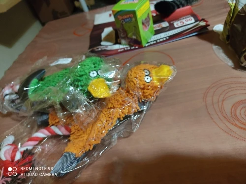 коассная игругшка) очень понравилась моей собачке, уже 3 часа не выпускает из зубиков и лапок))) игрушка пищит и шуршит, материал скомбинирован разный, приятный на ощупь)) спасибо) если Ваш питомец,не любит или боится шум, то это может 1 минус, пищалка издает, не соишком резкий звук