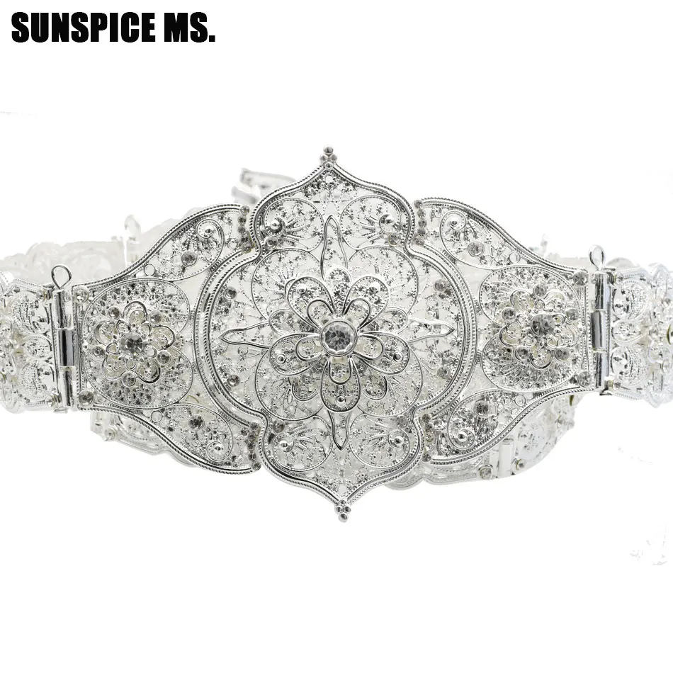 Изысканный серебристый цвет, полый цветок, металлический пояс для женщин, талия, цепочка для живота, регулируемая длина, горный хрусталь, свадебный пояс, украшения для тела