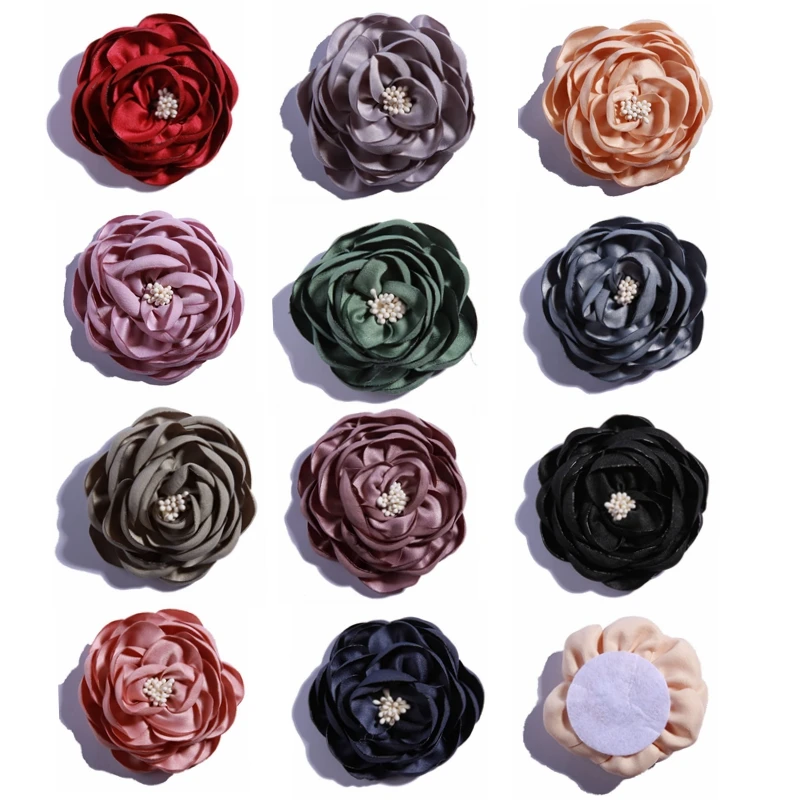 50 шт. 7 см винтажные сгоревшие атласные цветы с стойкостью для головного убора корсаж цветок для шляпы платье аксессуары