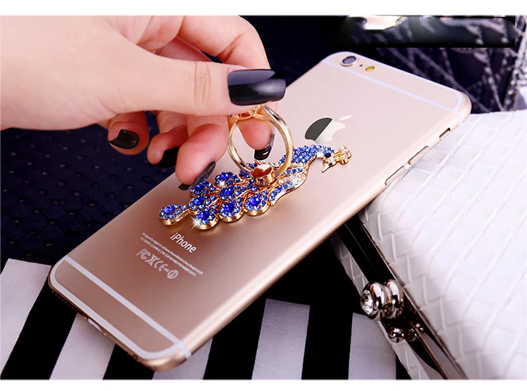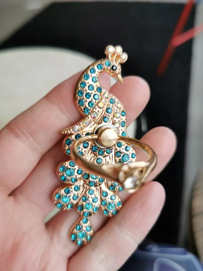 Алмазный металлический держатель с поворотом на 360 градусов, кольцо на палец павлина для iPhone 13, 12, 11, XS Max, XR, 8, 7, 6S, Redmi 9, 9T Pro, Note 9S, 10, подставка-держатель