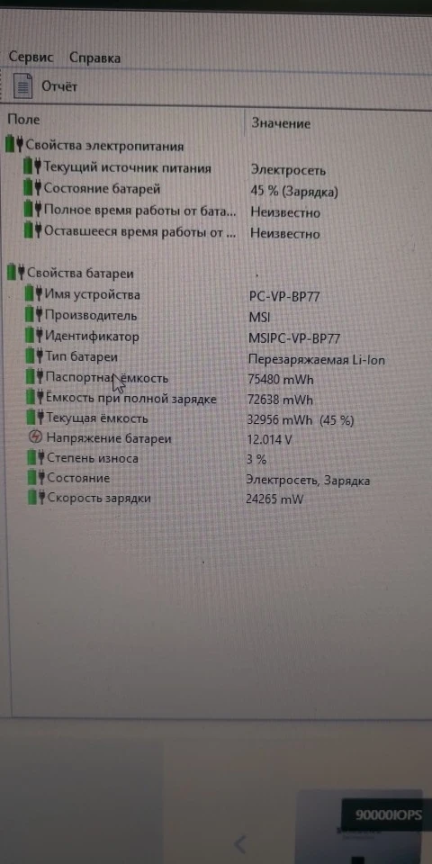5h45 Минимальная емкость на моем i7 16Go RAM SSD msata gtx660m. Хорошие представления. Но иногда красный светодиод мигает на моем ноутбуке, когда батарея полностью заряжена и работает в отрасли. Msi сказал в руководстве, что аккумулятор неисправен. Светодиод останавливается мигать, когда я отключаю Питание переменного тока. Я надеюсь, что эта батарея будет работать долгое время, прежде чем умру.