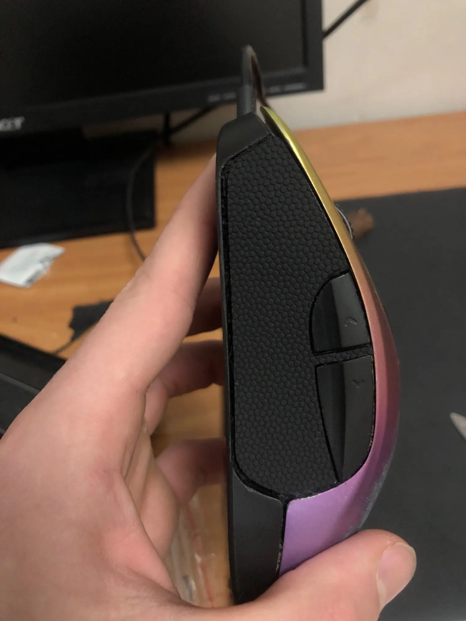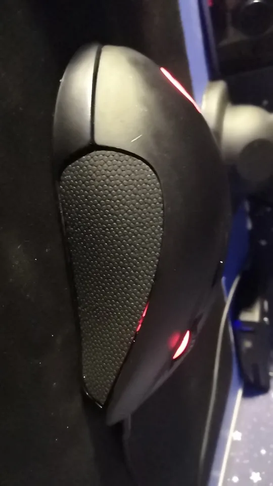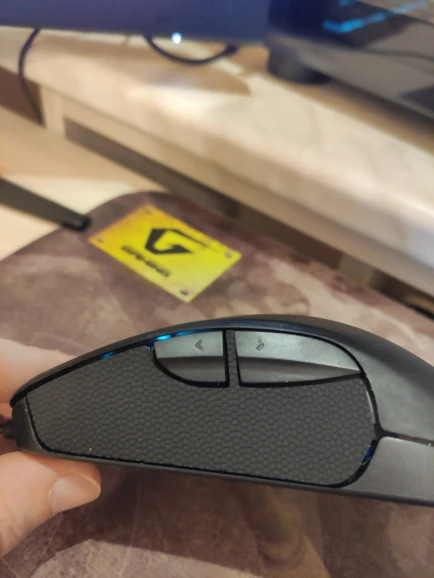 Хорошо держится и легко режется канцелярским ножом. Что позволило мне подогнать под свою мышь.