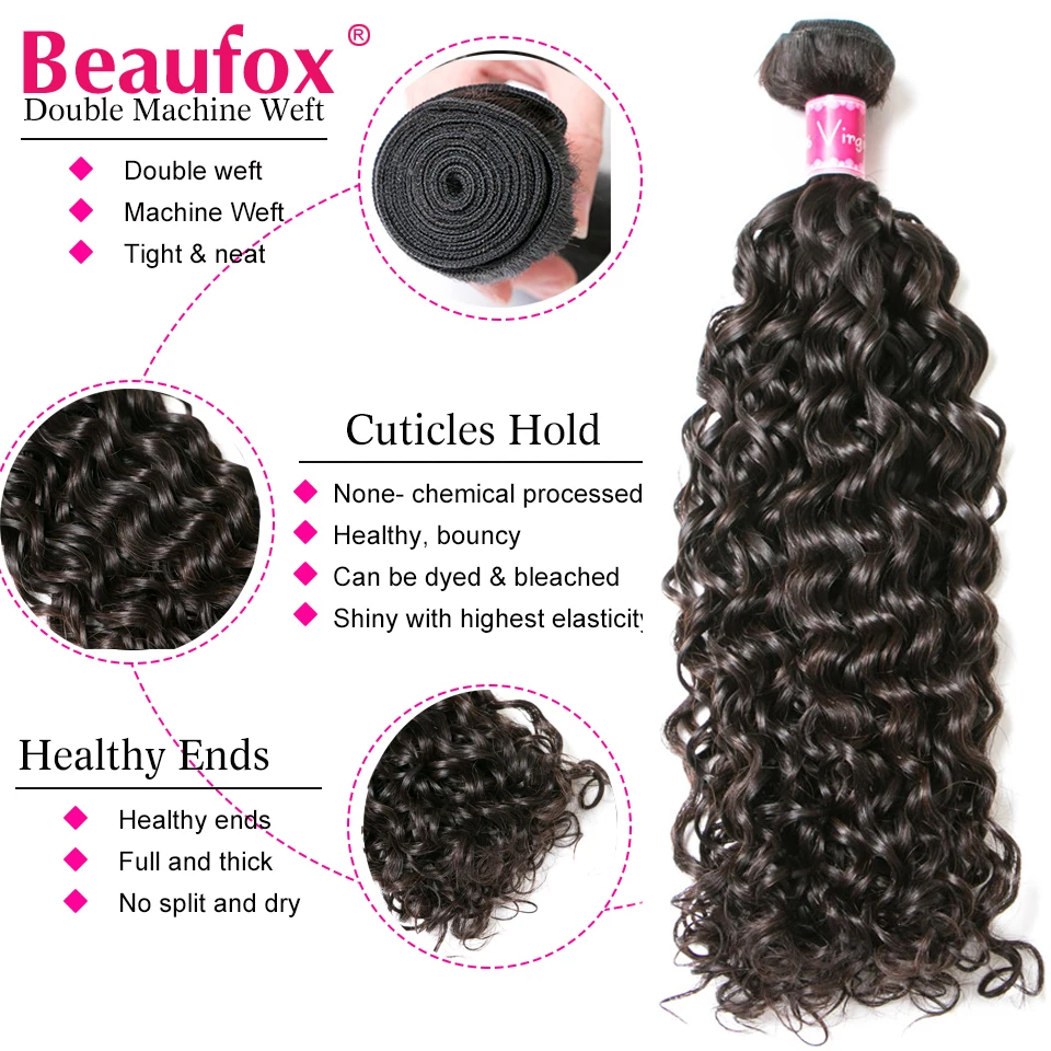 Малазийские волнистые волосы Beaufox, 3 пряди, с фронтальной застежкой, Реми, с застежкой, кружевная Фронтальная застежка, с пупряди Реми