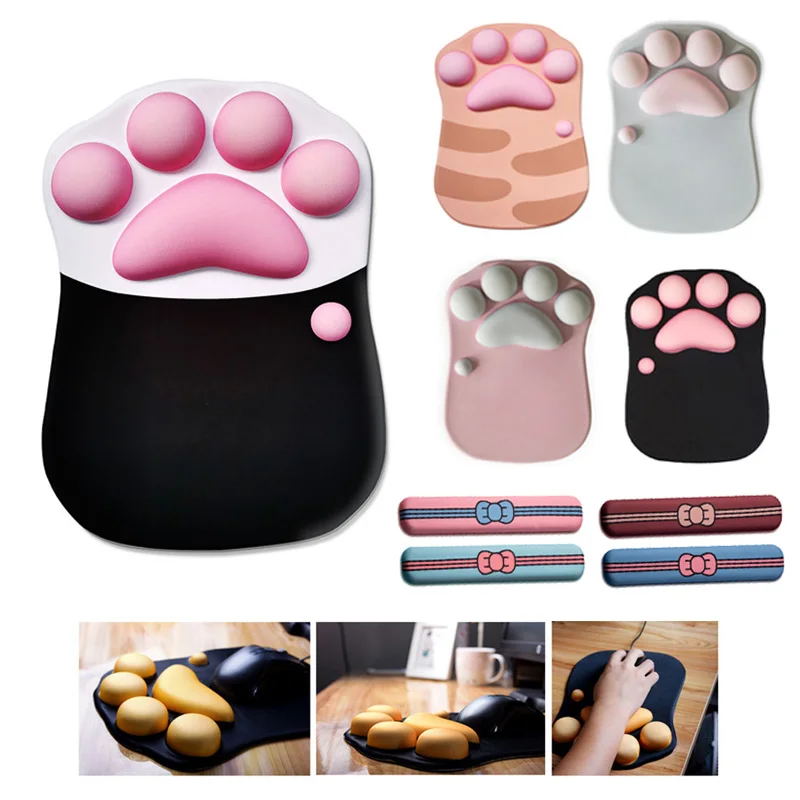3D милые коврик для мыши аниме мягкая кошка лапой коврики для мышиrзапястий Поддержка комфорт кремния пены памяти игровой коврик для мыши