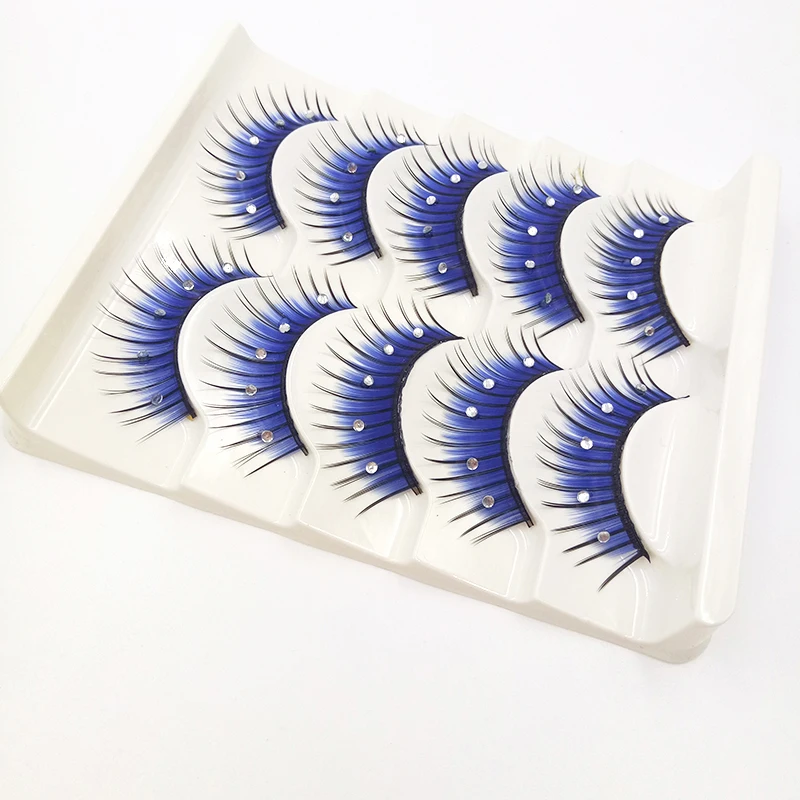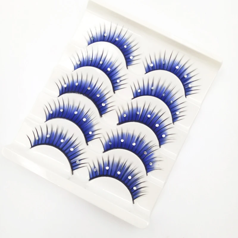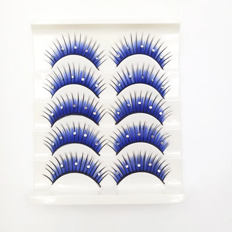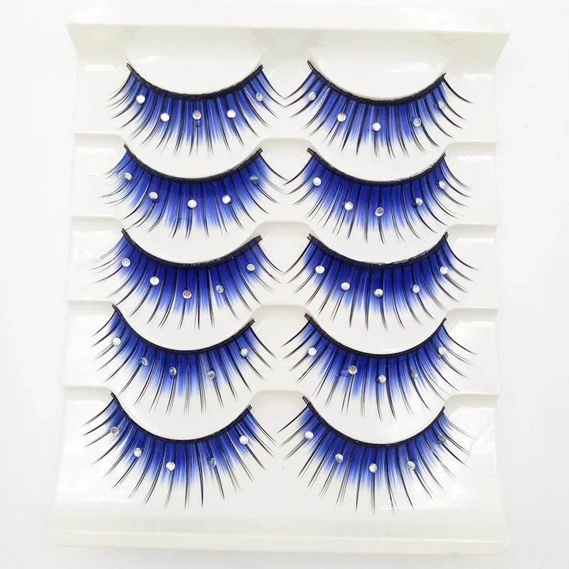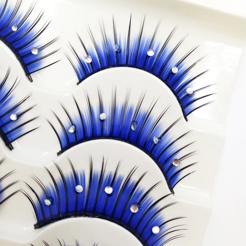 Накладные ресницы 3D Стразы, длинные густые накладные ресницы для наращивания, принадлежности для Хэллоуина, макияжа глаз, синие, 5 пар