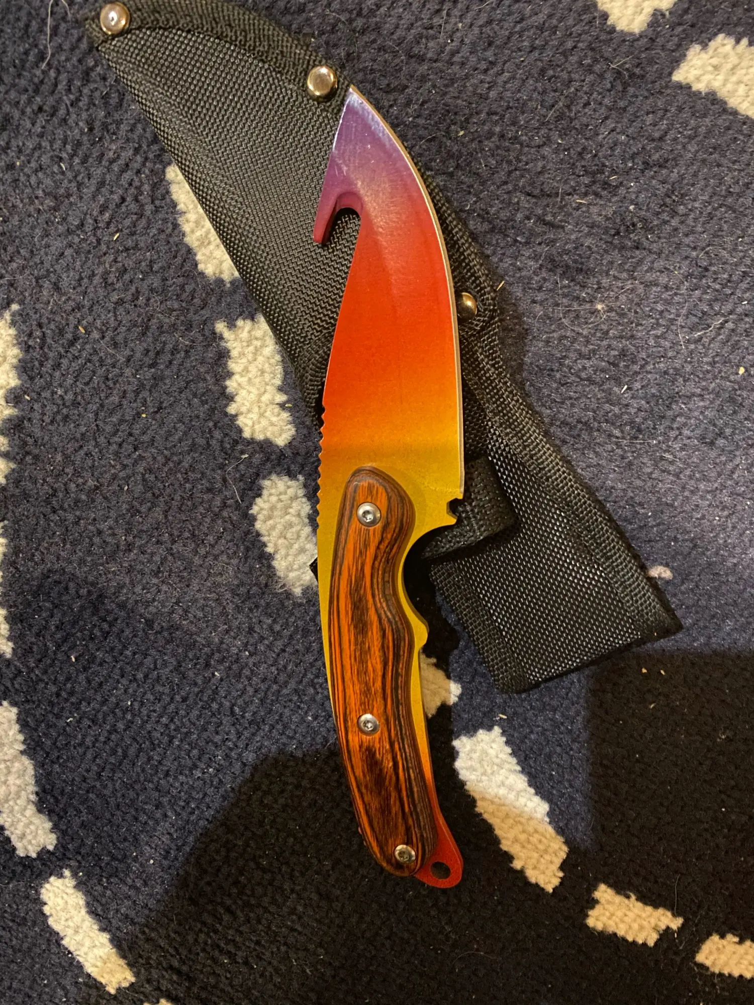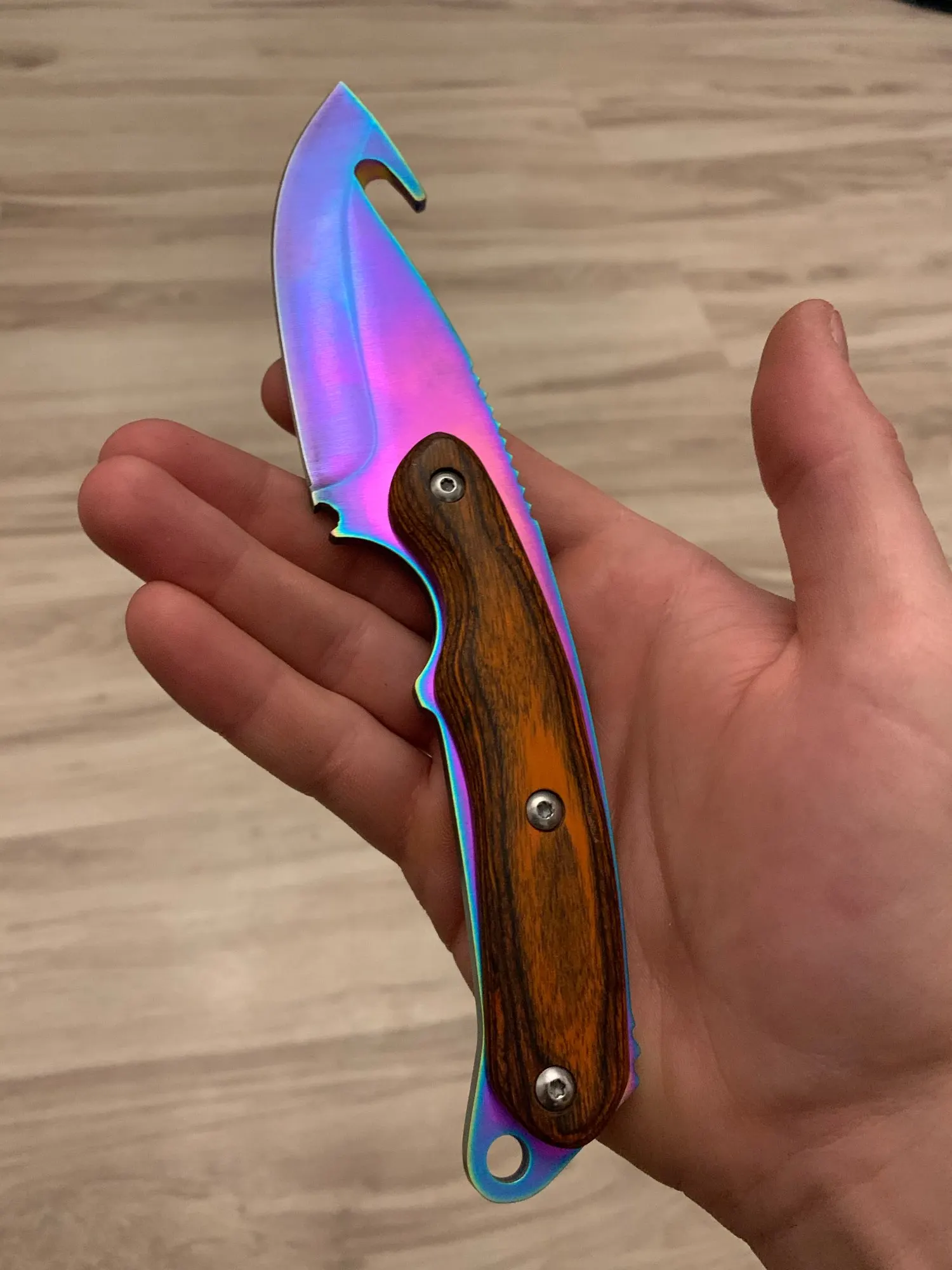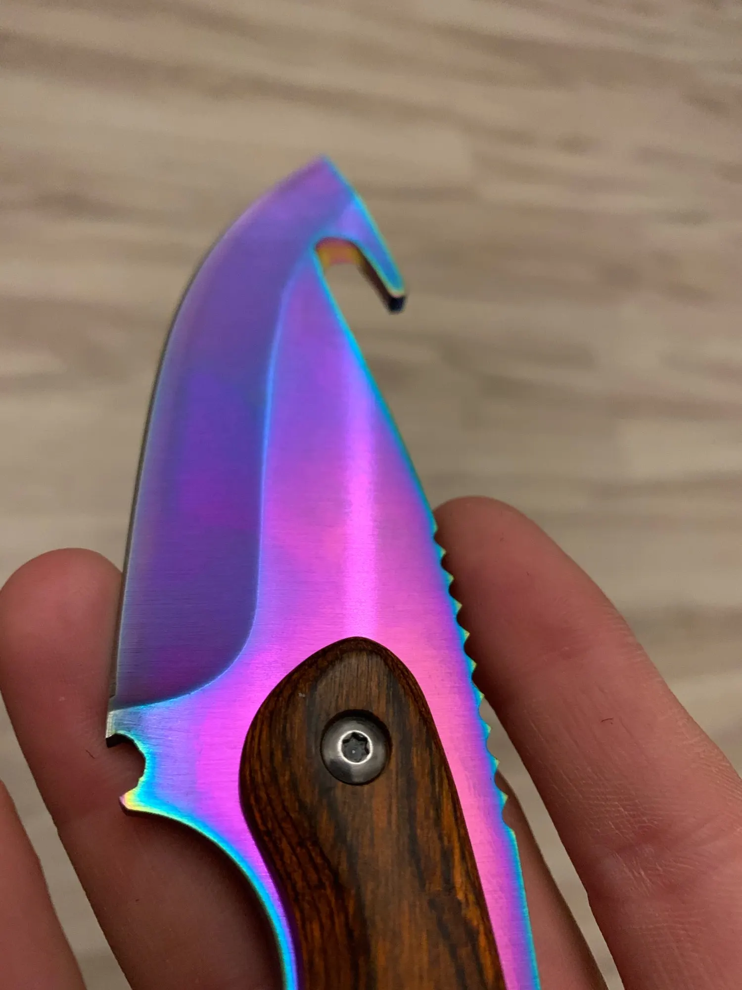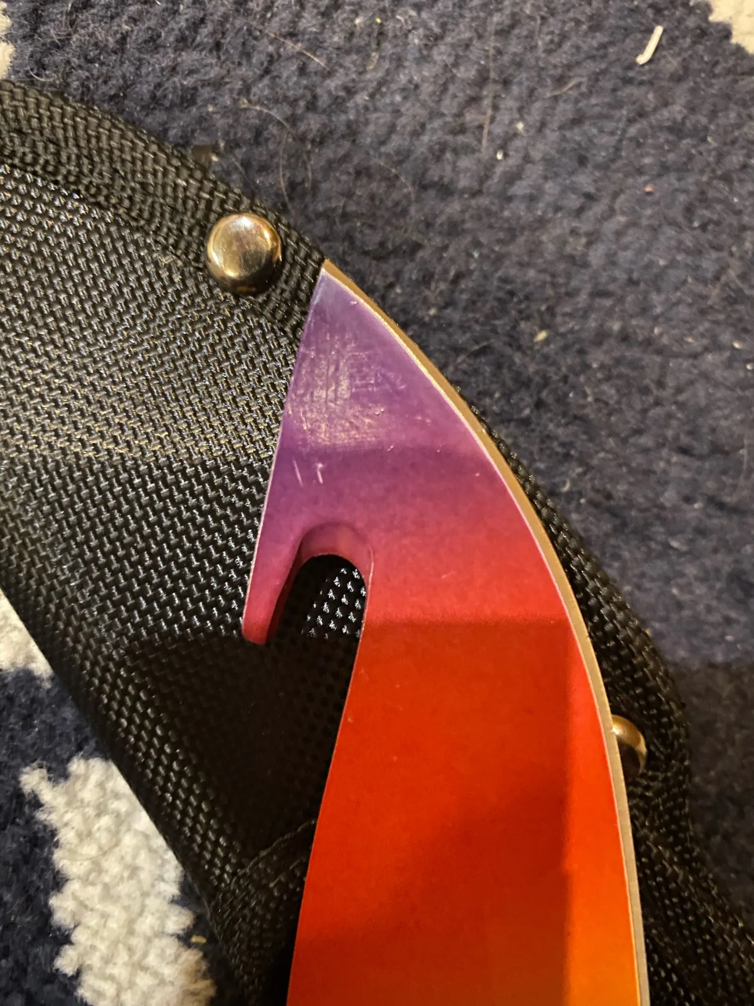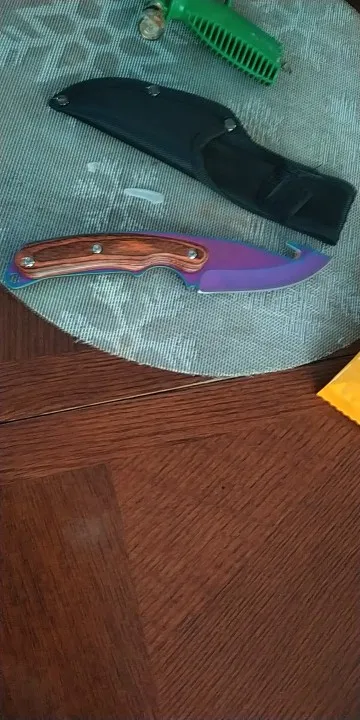 Нож прекрасный. Не сильно заточеный пришёл, но покупал для коллекции, так что не принципиально. До Тольятти и шёл примерно 1, 5 месяца (может меньше, потом точнее дополню). Рукояткая гладкая, приятно лежит в руке. Чехол сделан качественно, придирки ни какой. Крепление под крестовую отвёртку, разберать легко. Цвет градиент очень крксивый, спасибо большое!