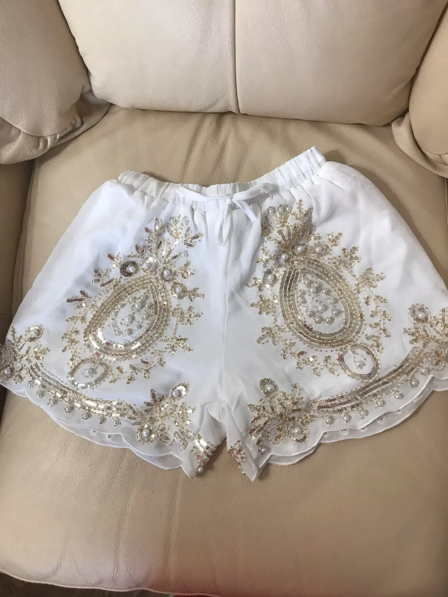 Женские шифоновые шорты Cakucool, летние широкие бриджи с цветочным принтом, украшенные бисером