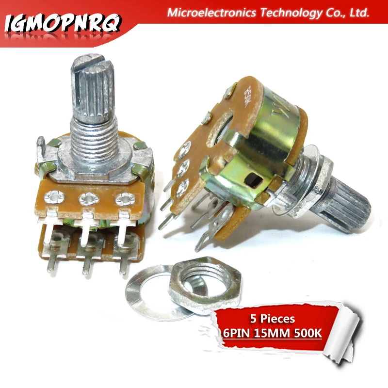5 шт. WH148 6PIN B500K двойной стерео потенциометр 500 кОм вал 15 мм горшок 500K Ом R