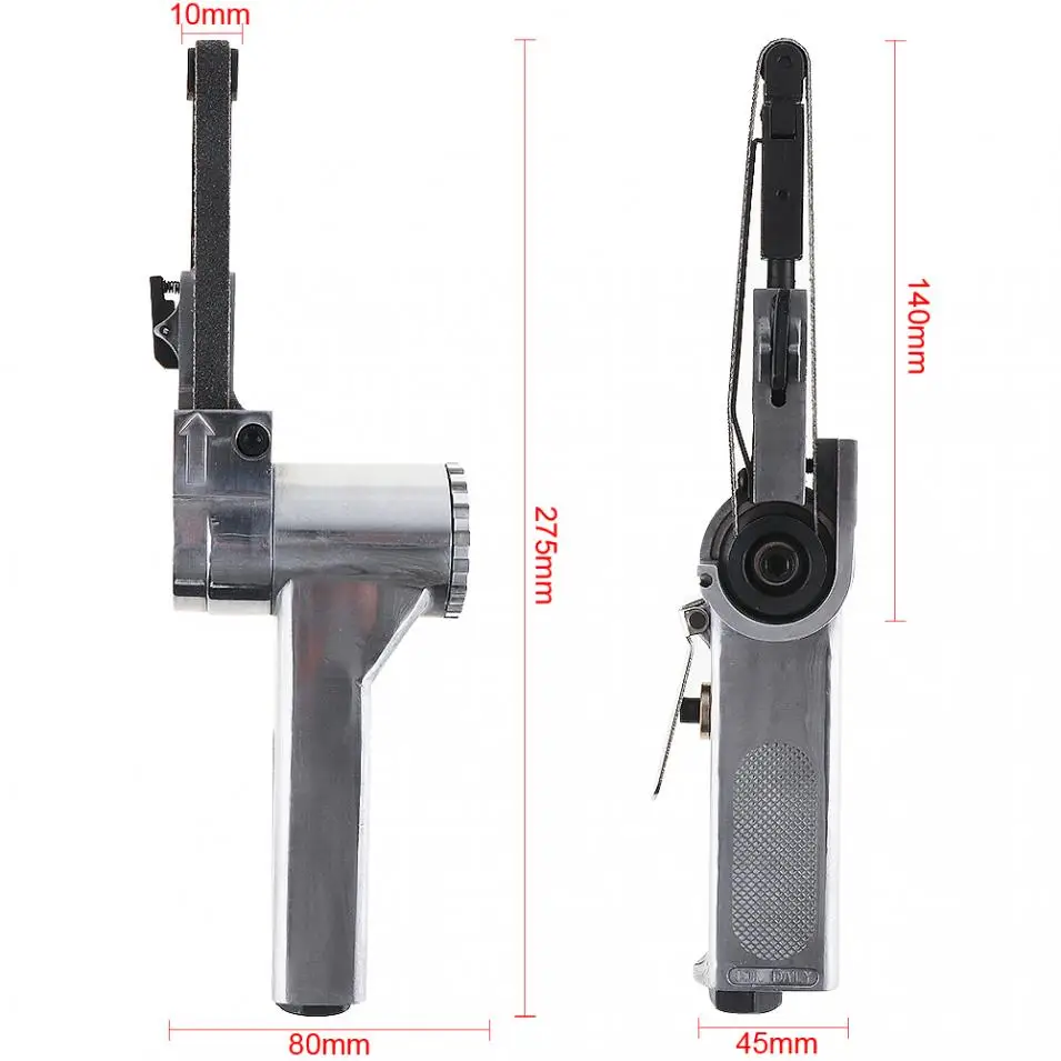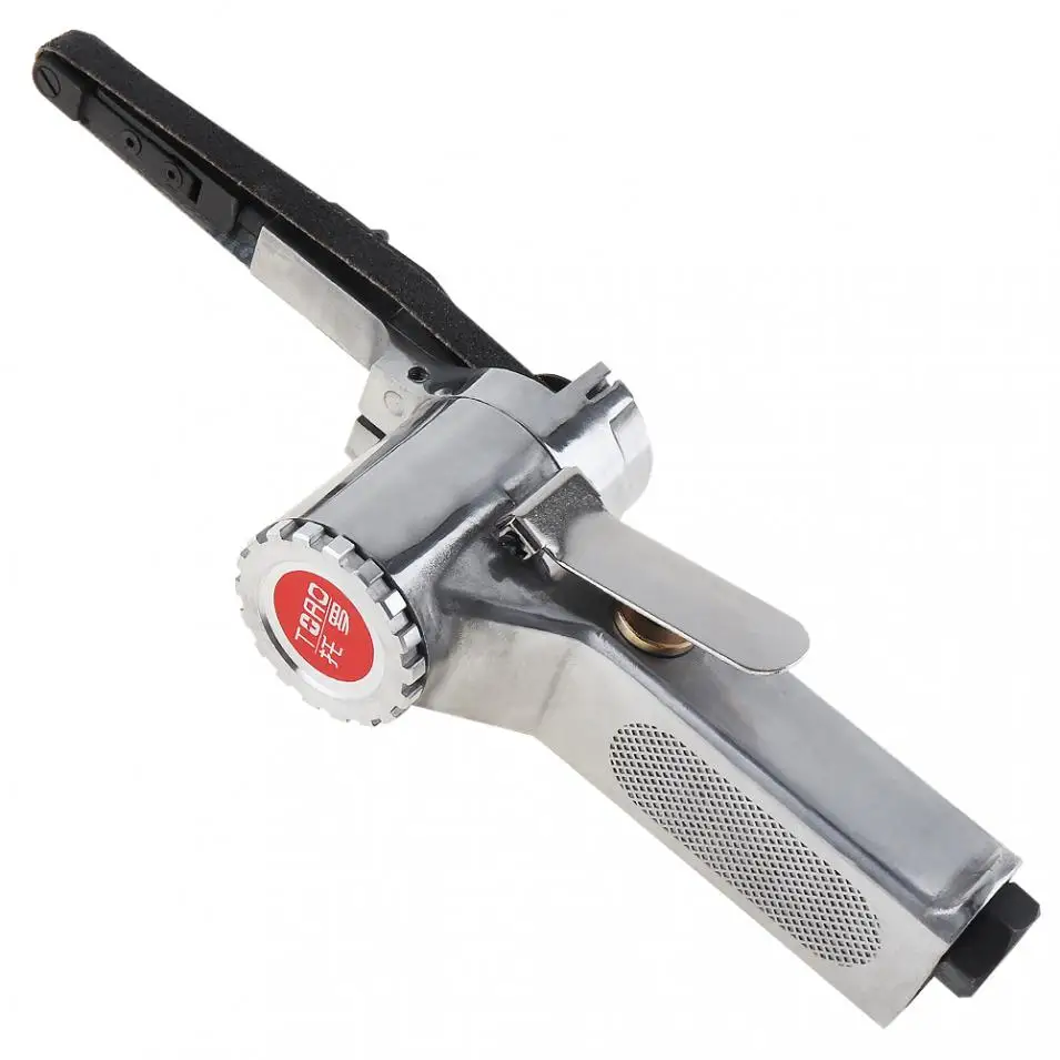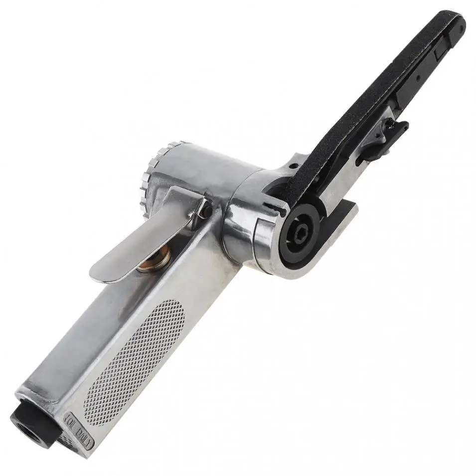 Особенности:-Простой рычаг натяжения ремня-Нескользящая ручка-Управление переменной скоростью-Увеличенное пространство шкива для более толстых ремней-Корпус из сплава, простой и легкий дизайн.-Широкий ремень 10 мм подходит для шлифования в узкой области.-С целью работы можно отрегулировать угол руки 260 градусов.-Быстрое изменение шлифовального ремня.-После выхлопа, низкий уровень шума.-С небольшим гаечным ключом, легко разбирается.-Подходит для механического производства, аппаратных инструментов, литых деталей, бытовых аппаратных инструментов, инструментов, производства и других отраслей промышленности, различных видов полировки.-Точечная сварка используется для шлифования, удаления волос до края, полировки, шлифования, вогнутой обработки.<.li>
