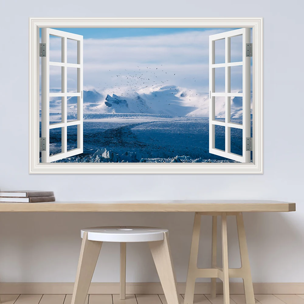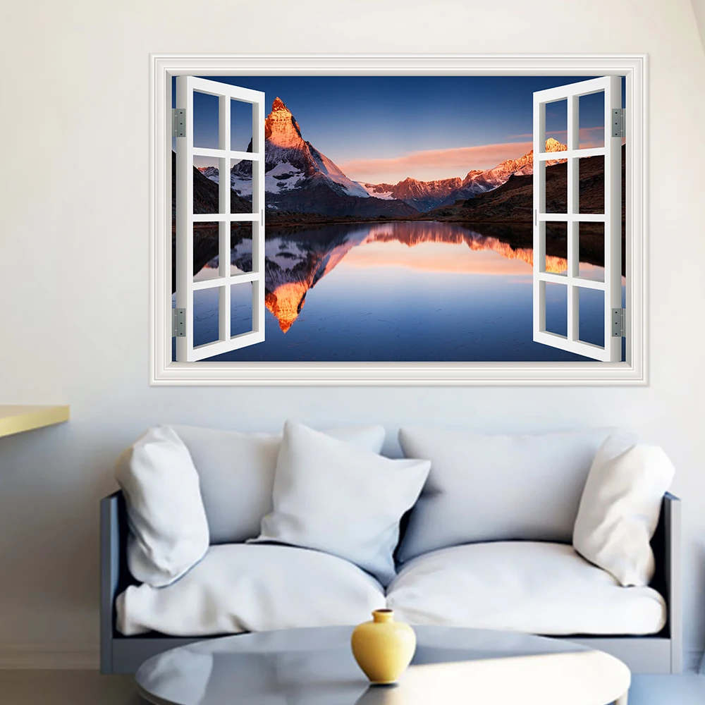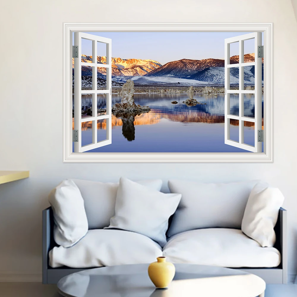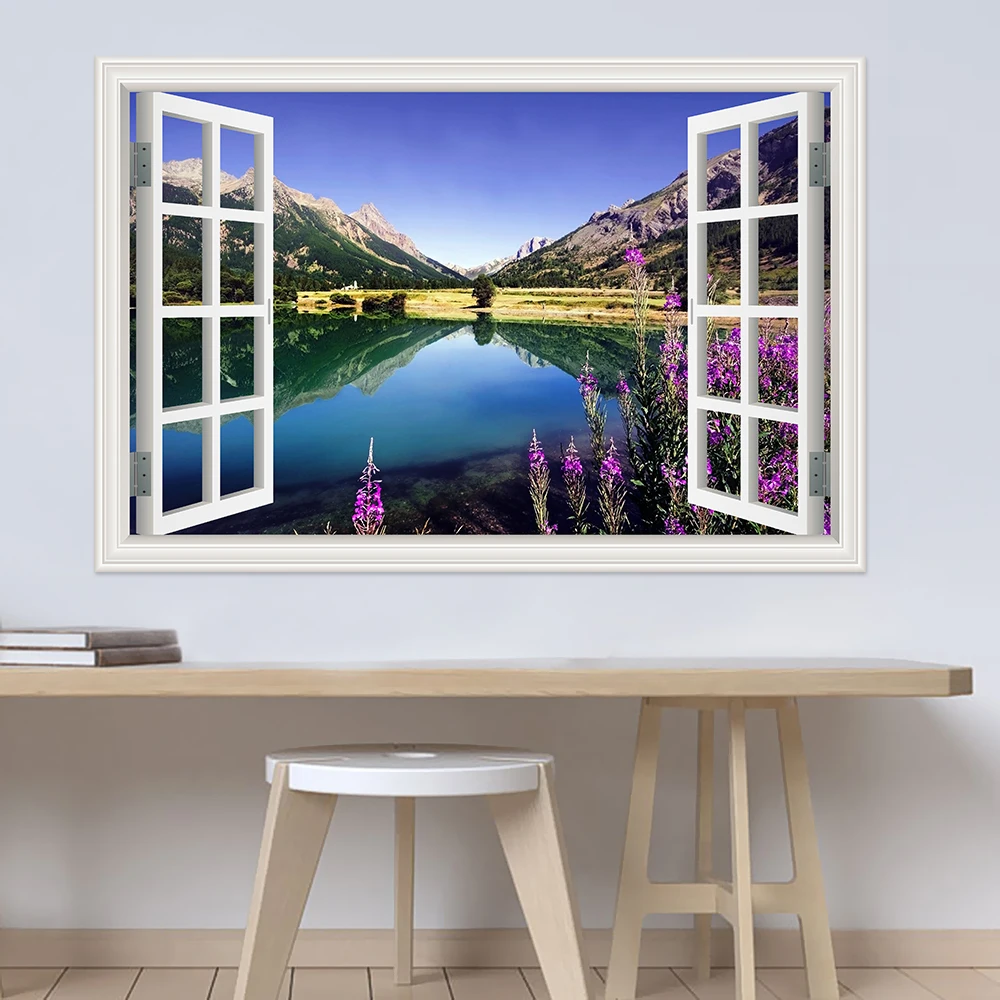 3d Наклейка на стену, с изображением природы, горных озер, окон, наклейки для домашнего декора, съемные наклейки для современной гостиной