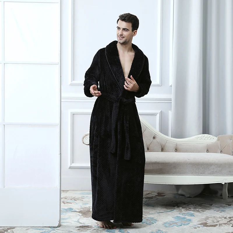 Удлиненный вафельный флисовый банный халат, Банные мужские халаты, женский, зимний, теплый, фланелевый, Мужская пижама