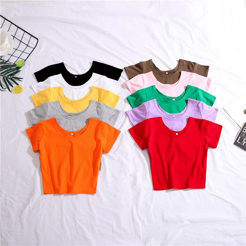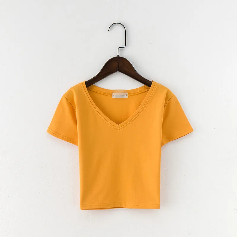 Женский короткий топ с V-образным вырезом, Повседневная хлопковая облегающая футболка с высокой талией, базовые пуловеры, лето 2021