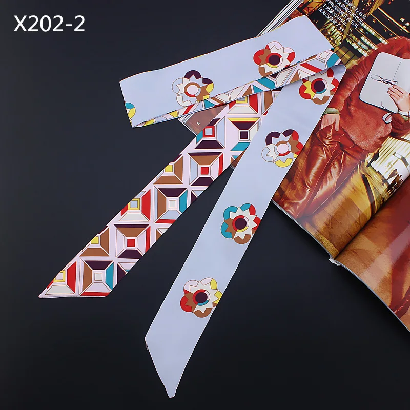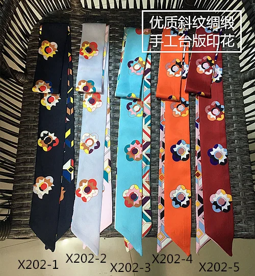 Шарф 120 см * 5, узкий длинный шелковый шарф с имитацией камелии, Солнцезащитный разнообразный волшебный галстук, сумка с ручкой, тонкие шарфы для женщин