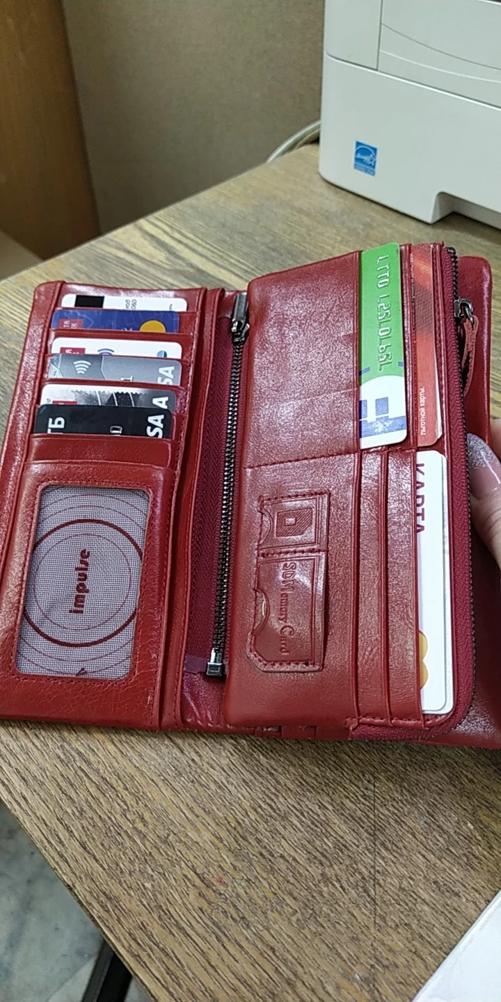 Кожаный кошелек, вместительный, несколько отделений для бумажных денег и отделение для мелочи. так же отделения для карточек. Мне кошелек понравился. рекомендую
