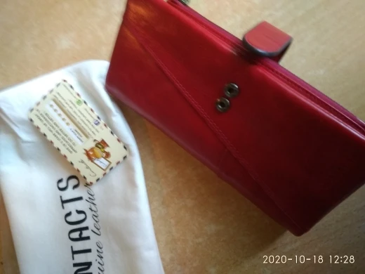 Кошелек понравился, вроде кожа. Но смущает, что от малейшего движения ногтем, появляются царапины, хотя на кусочке кожи, который вложен, хоть обцарапайся, ни одной царапины. Доставка долгая, 1 месяц. Но в целом, кошелек хороший. Рекомендую.