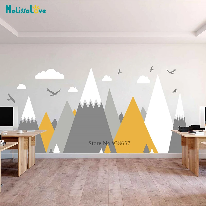 Скандинавский стиль, горы, настенные наклейки, детская комната, игр...