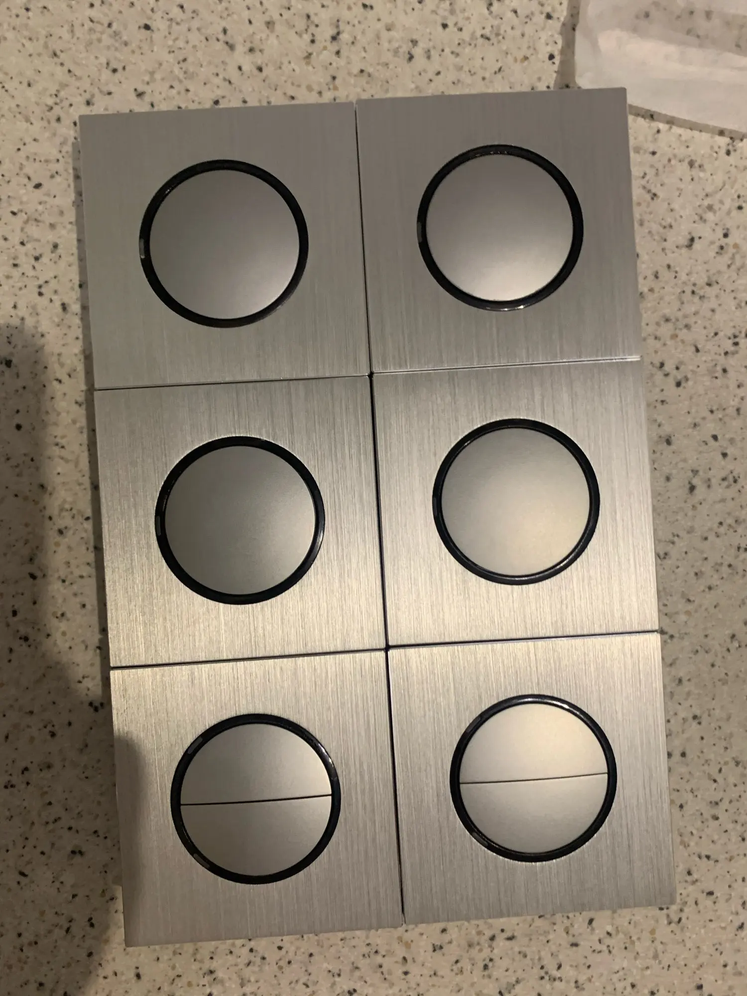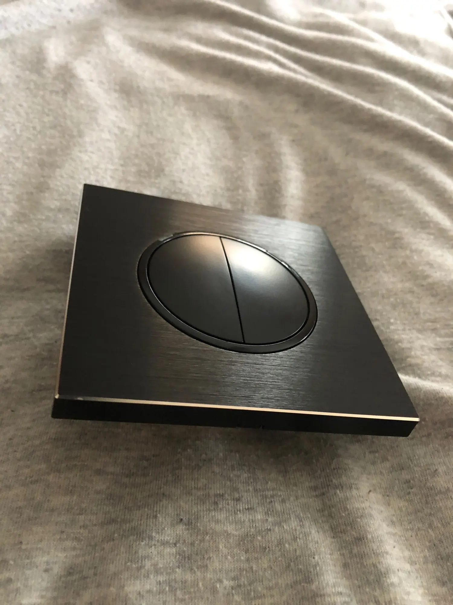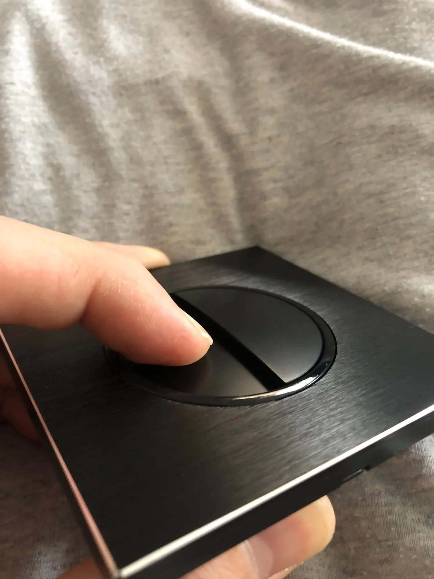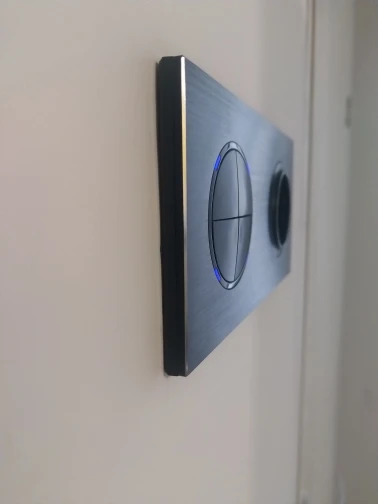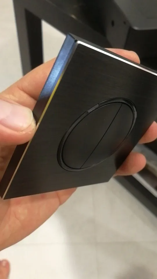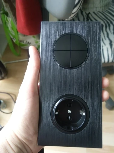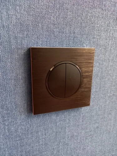 Выключатель красивый. НО! Кнопки нажимаются туговато. Чтобы включить нужно нажать на середину кнопки. Нажатие по краям приводит к перекосу кнопки.