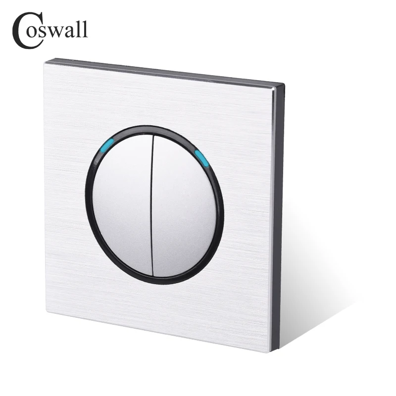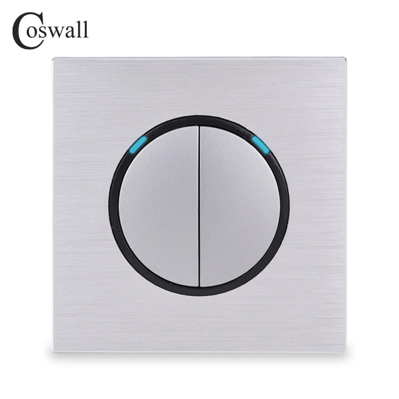 Настенный выключатель Coswall, 2 комплекта, 1 выключатель, со светодиодным индикатором, черныйсеребристо-серый, алюминиевая металлическая панель R12-02