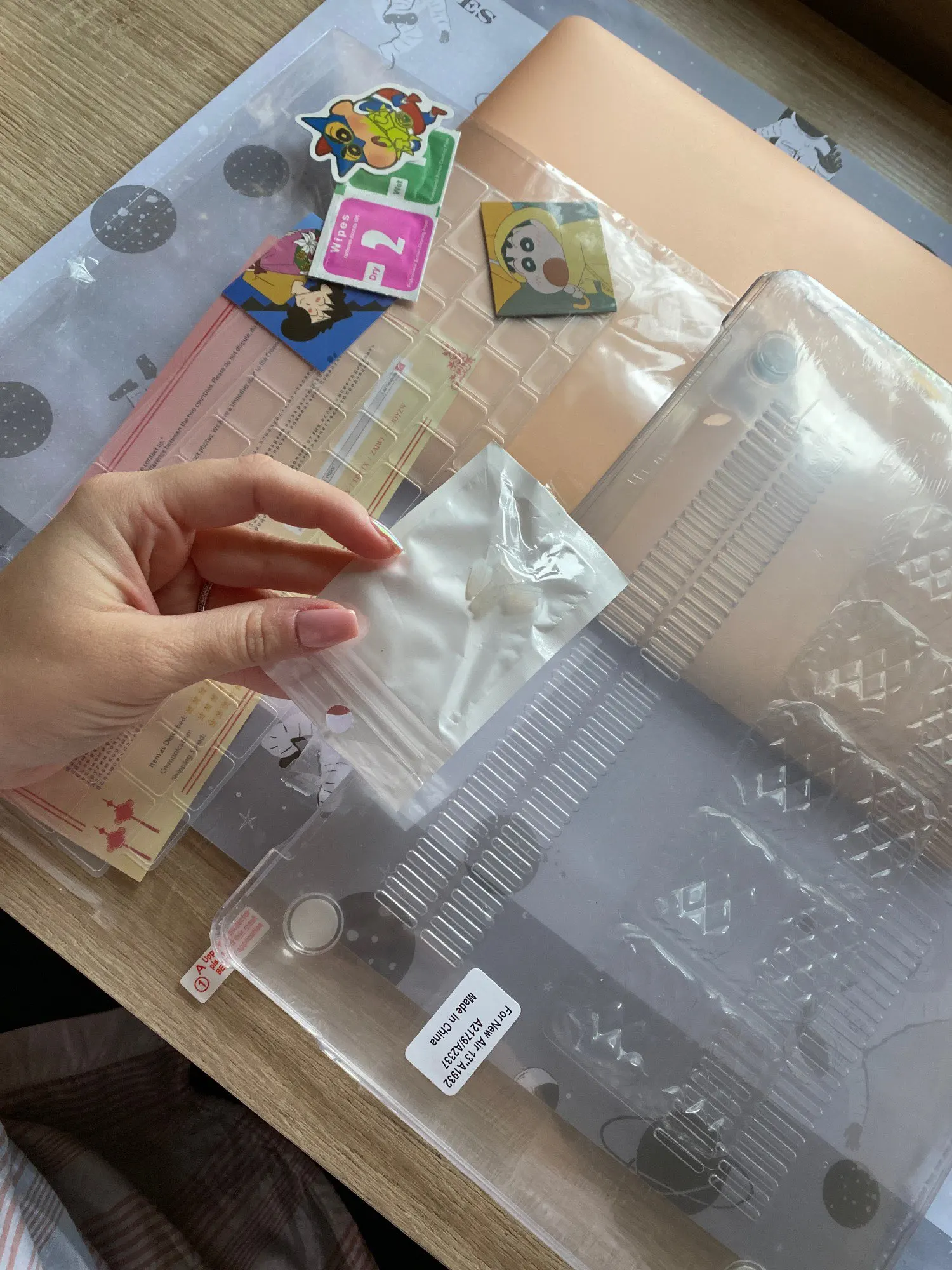 Заказ пришёл в Москву за 9 дней. Продавец общительный. Чехол упакован в пакт и пенопласт . Каждая часть чехла в пленке . В комплекте прозрачный чехол на Mac, накладка на клавиатуру , защитная пленка на экран + 2 салфетки , заглушки в разъёмы. Чехол сел хорошо на MacBook Air 2020. Выемки совпадают . Накладка на клавиатуру подошла. Пленку на экран клеить не умею, поэтому не стала этого делать. Открывается свободно. Я довольна . Товар и продавца рекомендую.