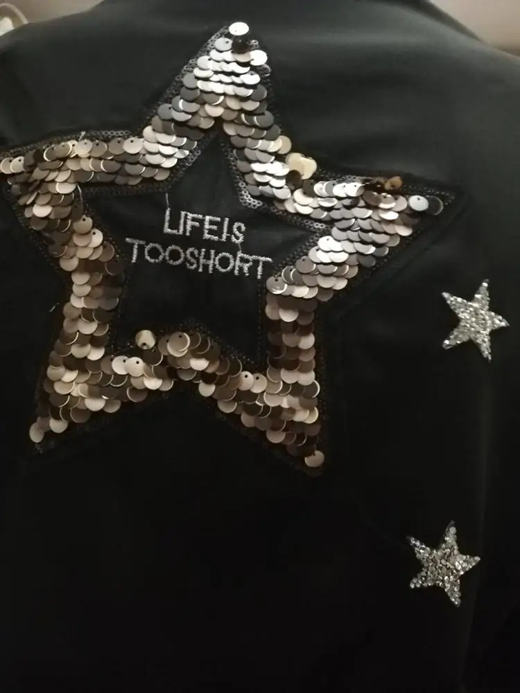 Футболка женская с блестками 24 см буквы звезды дело с ней байкерские нашивки для одежды наклейки 3d Футболка Мужская Бесплатная доставка