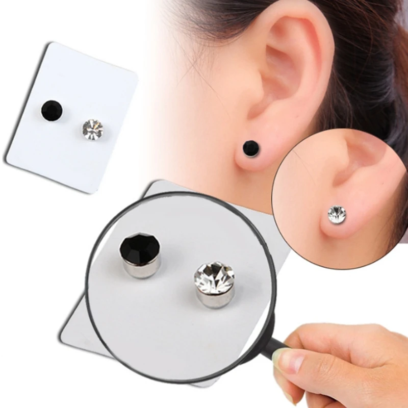 Серьги-гвоздики унисекс из сплава, бриллианты, круглые магнитные се...