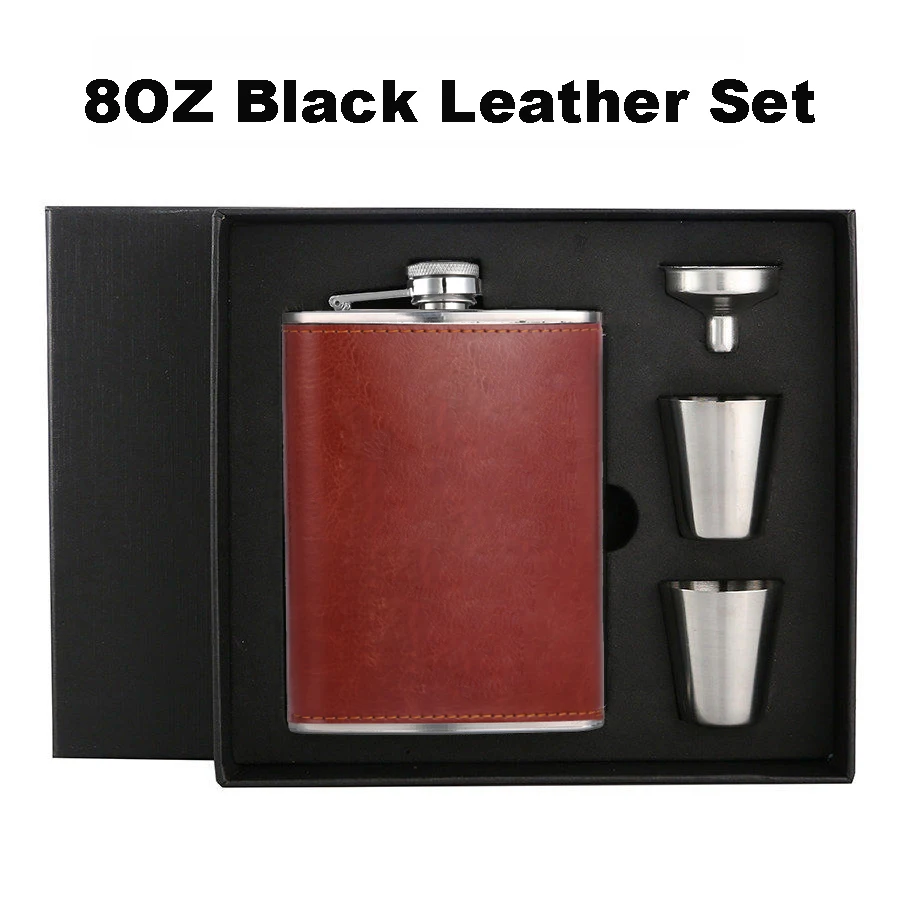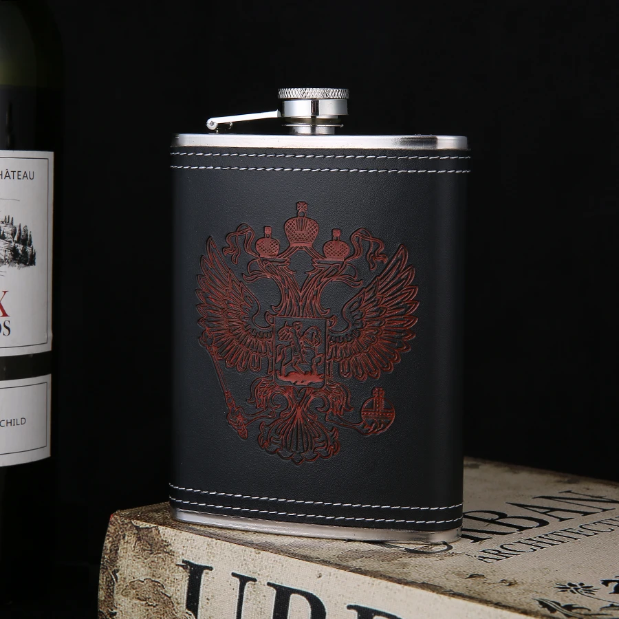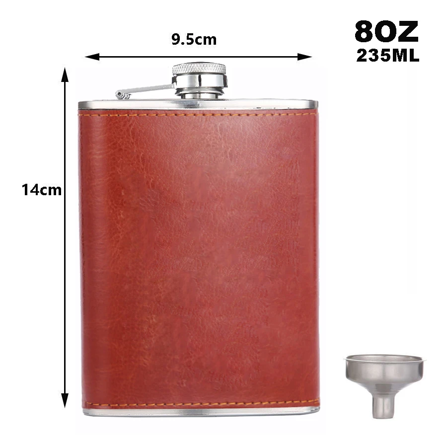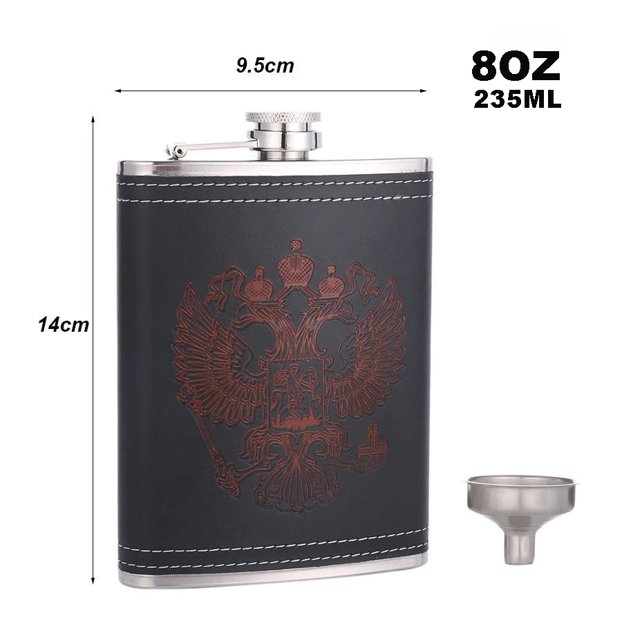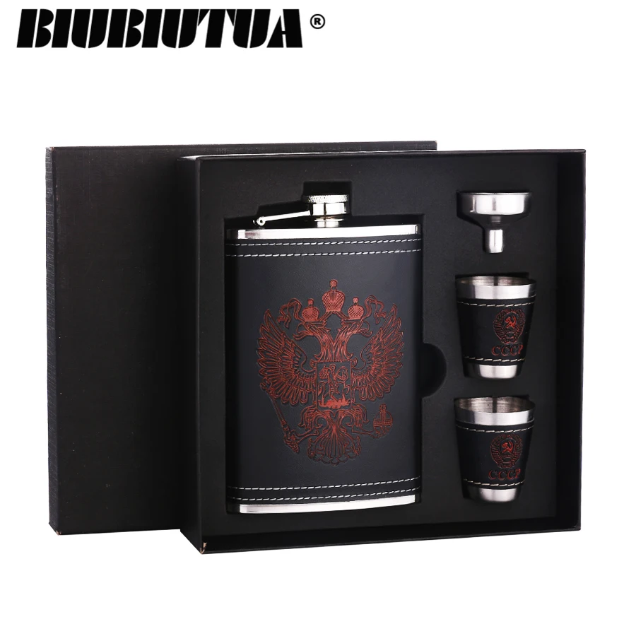 Фляга BIUBIUTUA из нержавеющей стали, 8 унций, с красным гербом, Кожаная фляга для виски, набор фляжек 18 унций