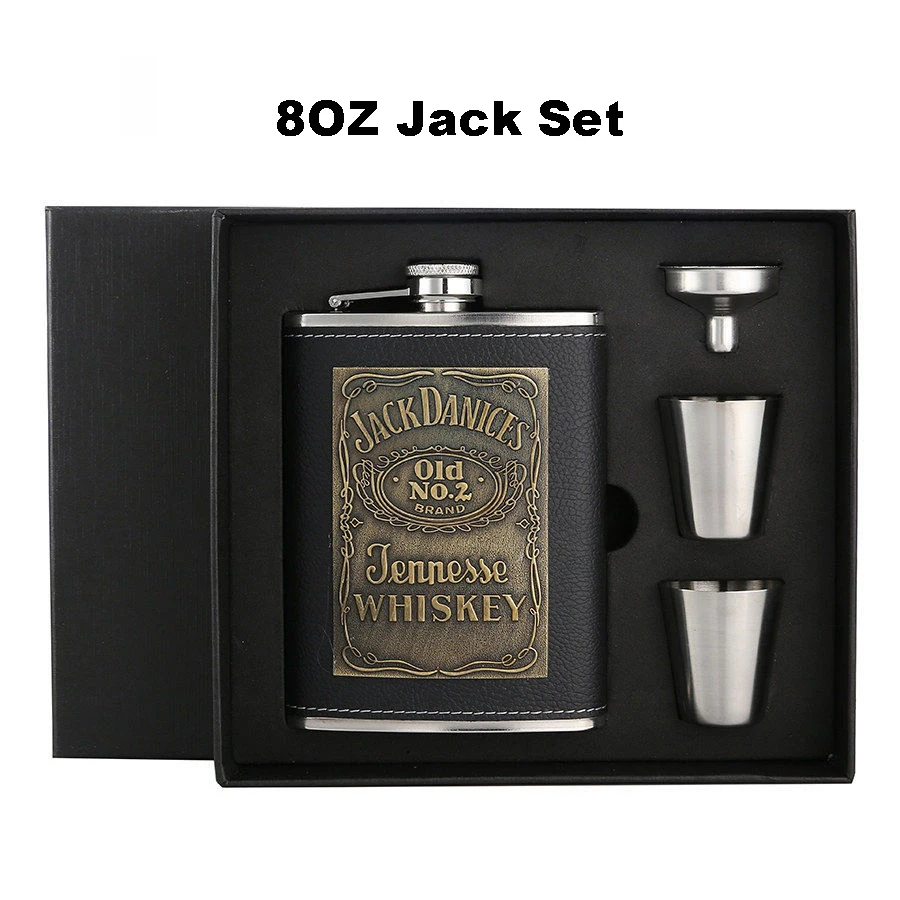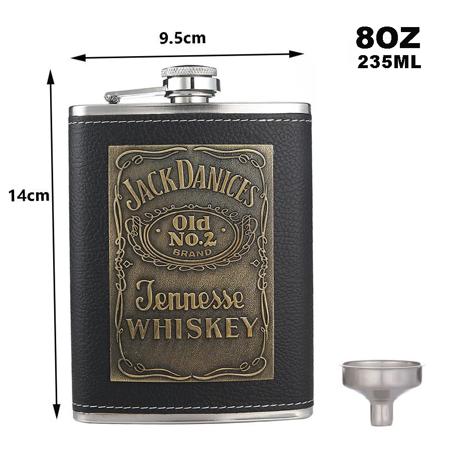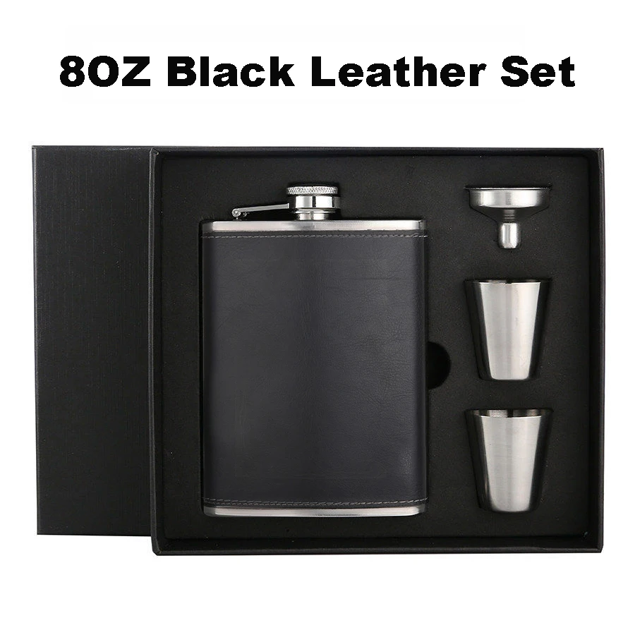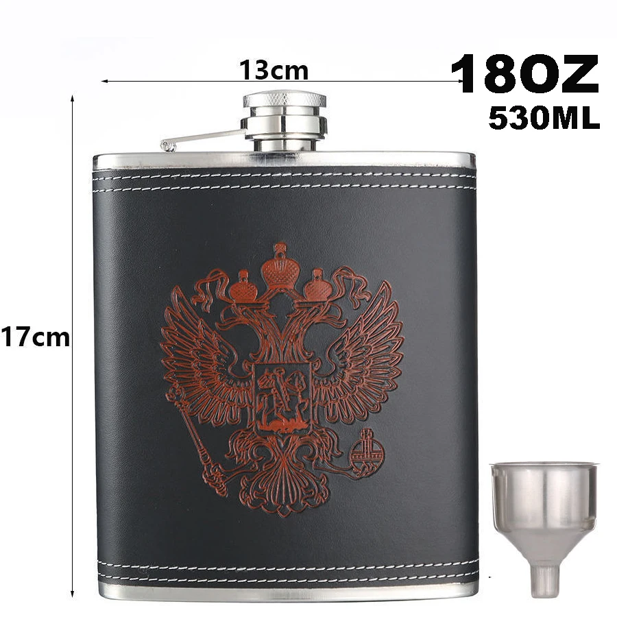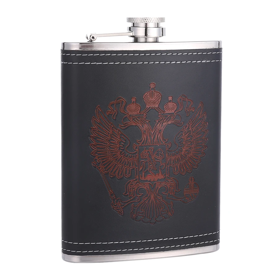 Фляга BIUBIUTUA из нержавеющей стали, 8 унций, с красным гербом, Кожаная фляга для виски, набор фляжек 18 унций
