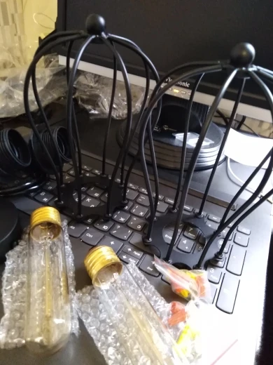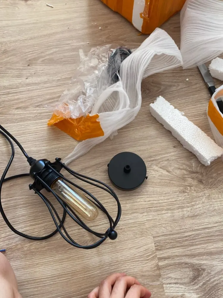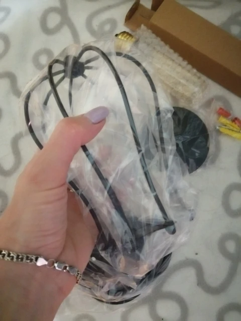 Шла посылка больше 2 месяцев, коробка была очень помята, весь пенопласт внутри поломан, но светильники и лампочки, к счастью, были целые, качество хорошее