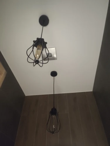 Светильники очень интересные по дизайну. Качество металла и спайки на "5". Единственный нюанс: отсутствие размерной сетки. Реально размером: высота 17 см диаметр 12 см. Без вилки, с креплением к потолку. Черный матовый цвет. Состояние лампочек не проверяла. Комплектация в норме.