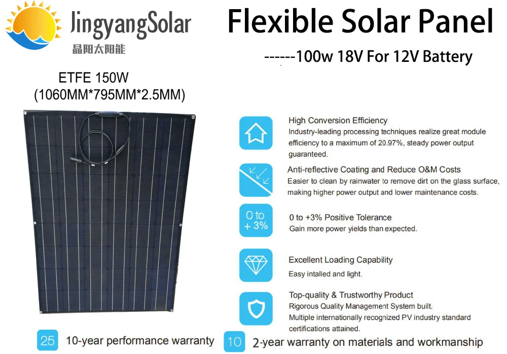 ETFE Гибкая панель солнечных батарей 150 Вт 24 В DC монокристаллическая панель солнечных батарей для системы заряда батареи комплект