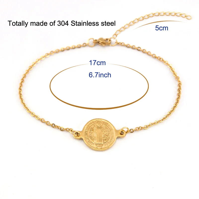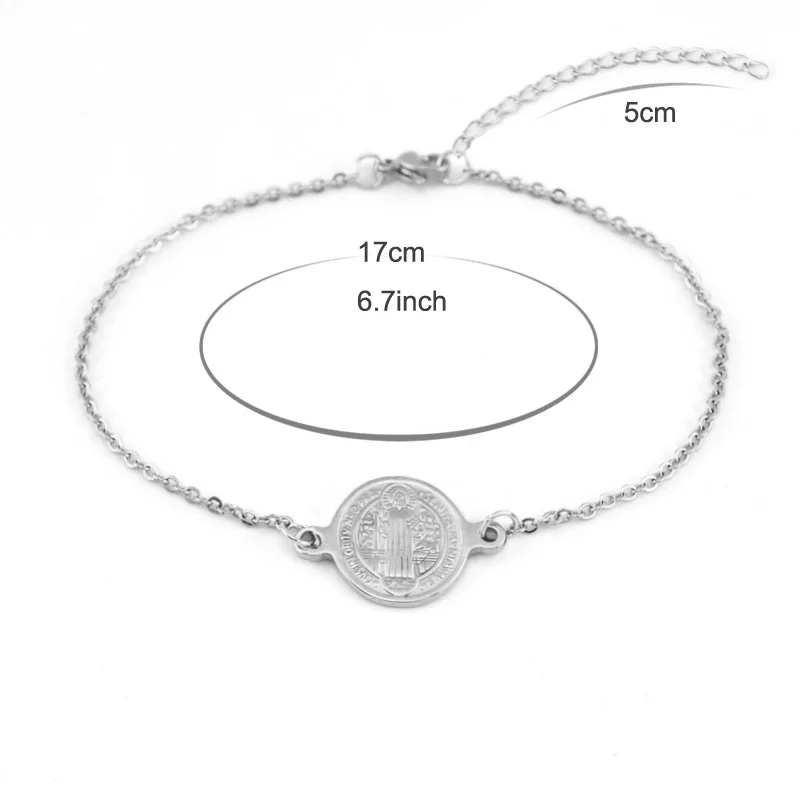 Женский браслет с подвеской Saint Benedict, Простой браслет из нержавеющей стали, 1 шт