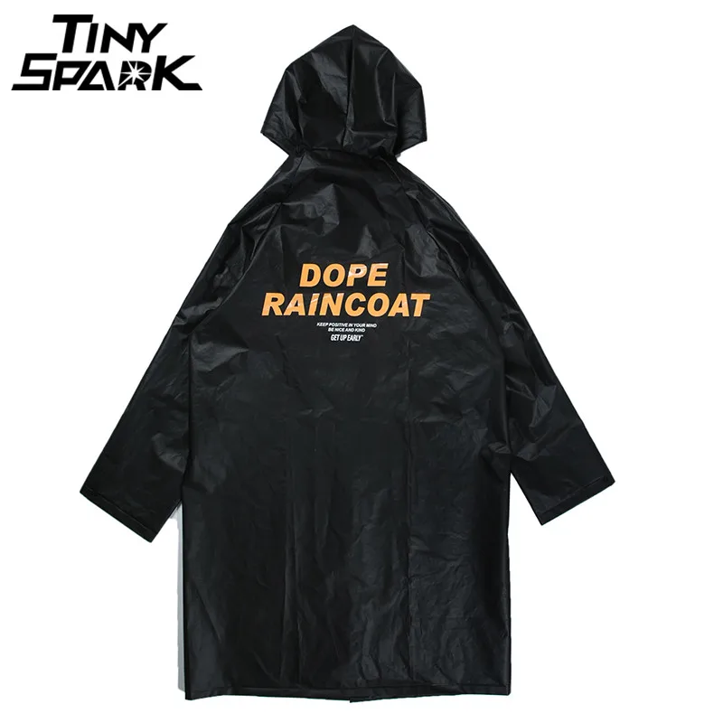 Куртка с капюшоном мужская, Модный водонепроницаемый дождевик в стиле хип-хоп, уличная одежда, повседневная длинная куртка, черный матовый 2021