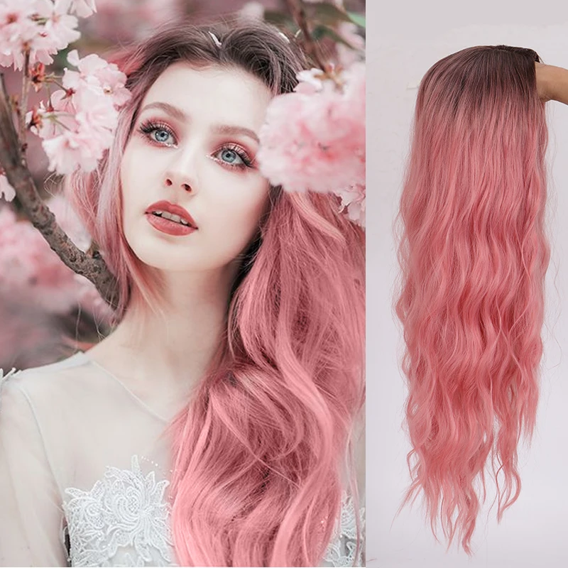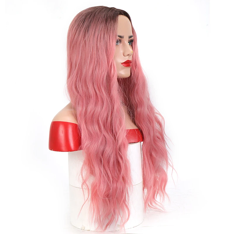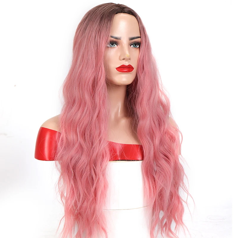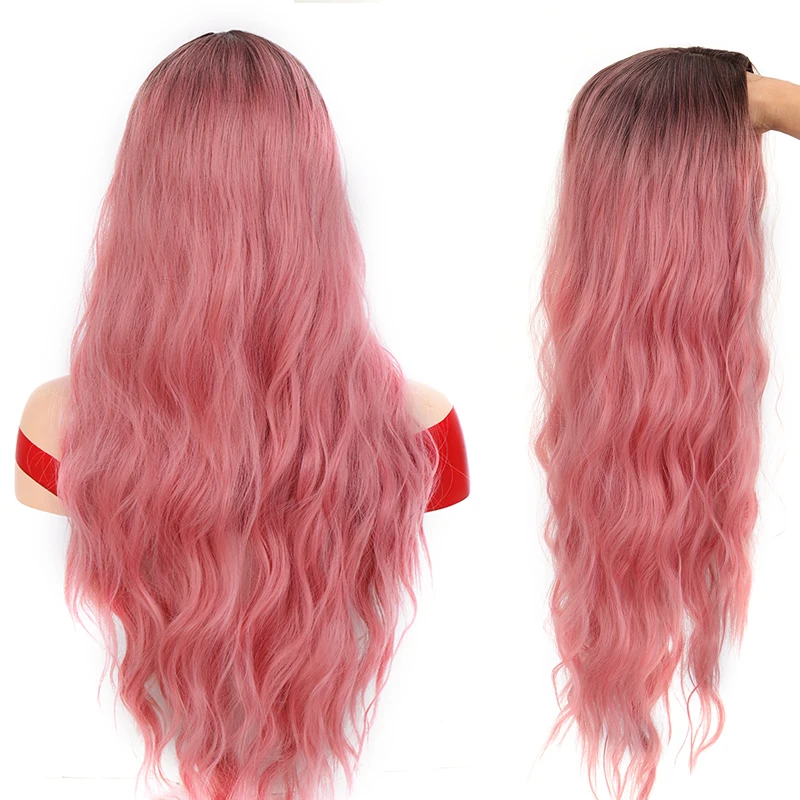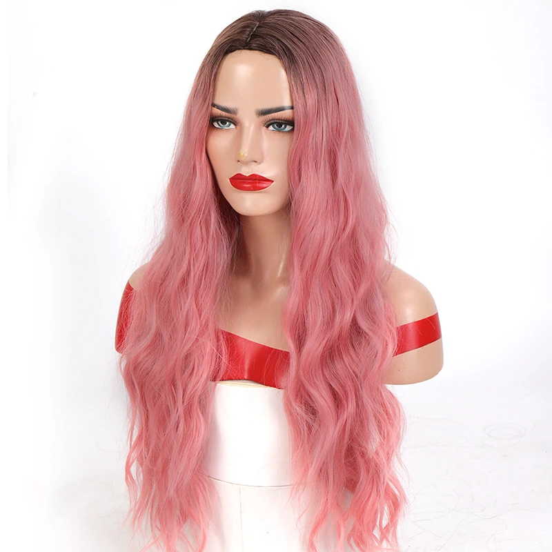 Feature1Pink Wig Long Wavy Wig Water Wave Wig