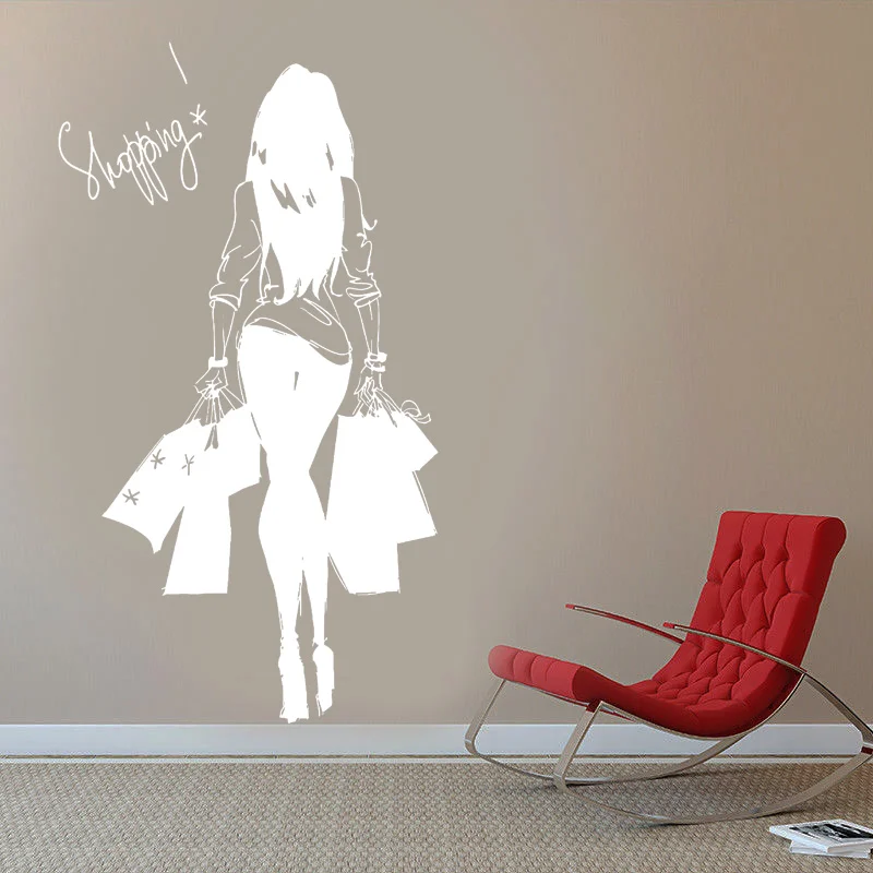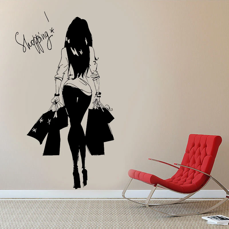Модная виниловая сумка для покупок для девушек, виниловая настенная наклейка на стену, магазин одежды, сексуальный шоппинг для девушек, украшение для спальни FS04