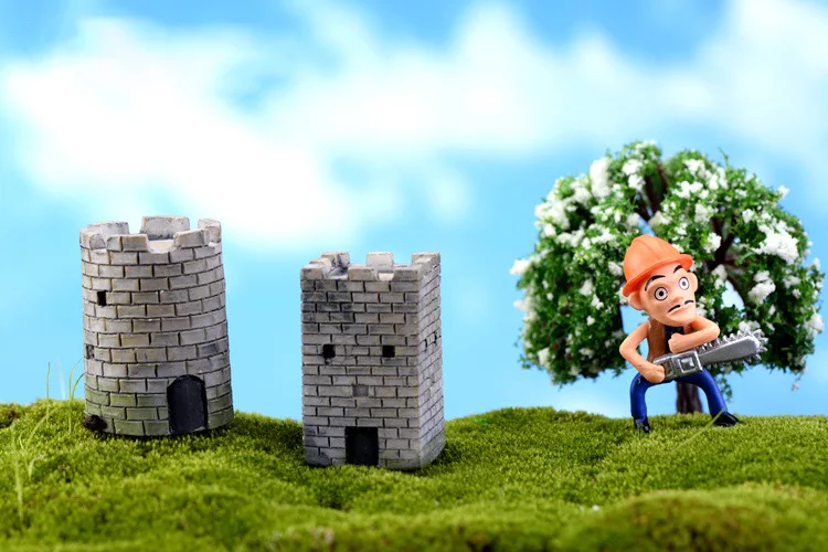 Статуэтка древнего замка из смолы, миниатюрная фигурка пейзажа, домашний декор, сказочные украшение садового орнамента, современные аксессуары, 1 шт.