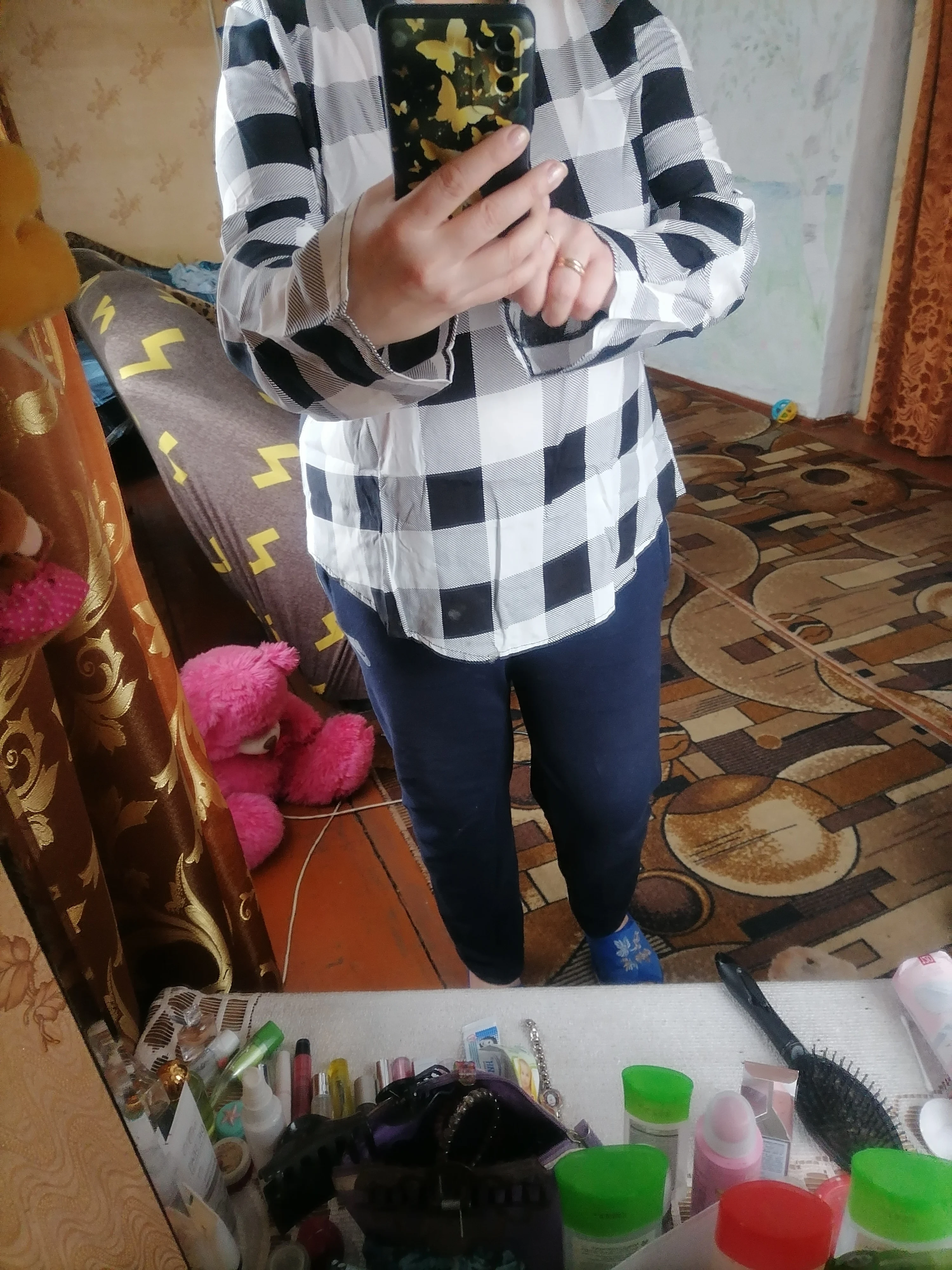 Отличная рубашка! заказываю второй раз, т к похудела и первая теперь болтается) Очень тонкая, легкая ткань. После стирки не выцветает, но садиться на размер. Спасибо продавцу за быструю доставку и качественную вещь!