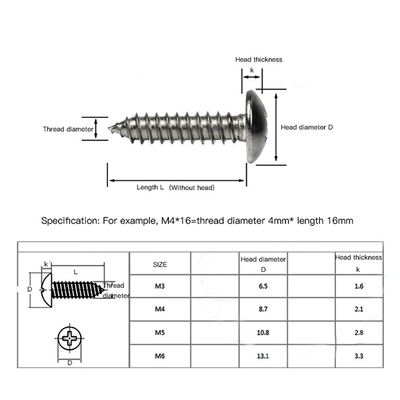 Саморезы M3 M3.5 M4 304 из нержавеющей стали, 50 шт.