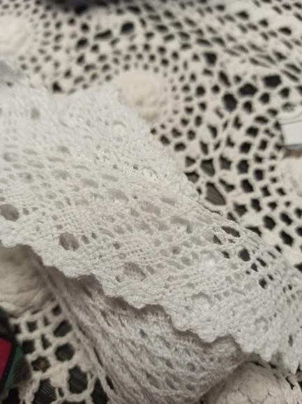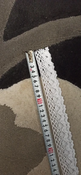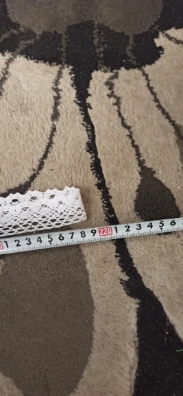 Получила кружево, красивое, аккуратно свёрнуто.Заявлено по длине 5 ярдов, тоесть 455 см, по факту прислали 437 см, не хватает 18 см. Учитывая цену спор открывать не стала, но одну звезду сняла. Доставка очень долгая, заказывала в середине ноября, получила 18 января.