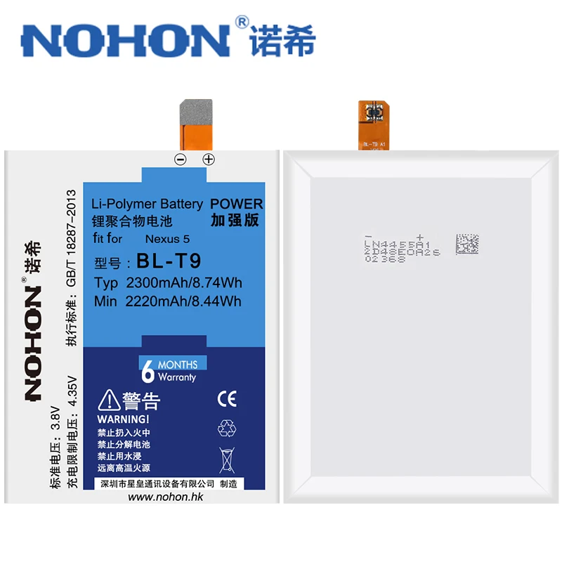 Оригинальный NOHON Батарея для LG G4 G3 G5 V10 Google Nexus 5 BL-53...