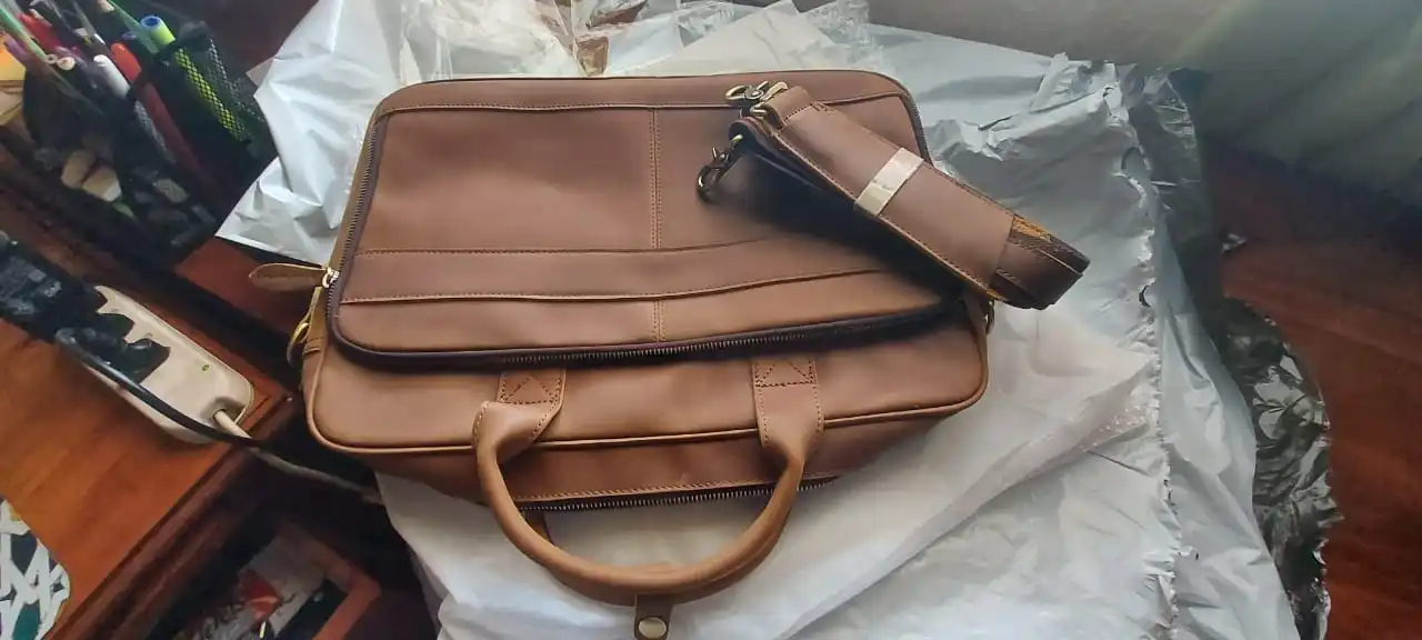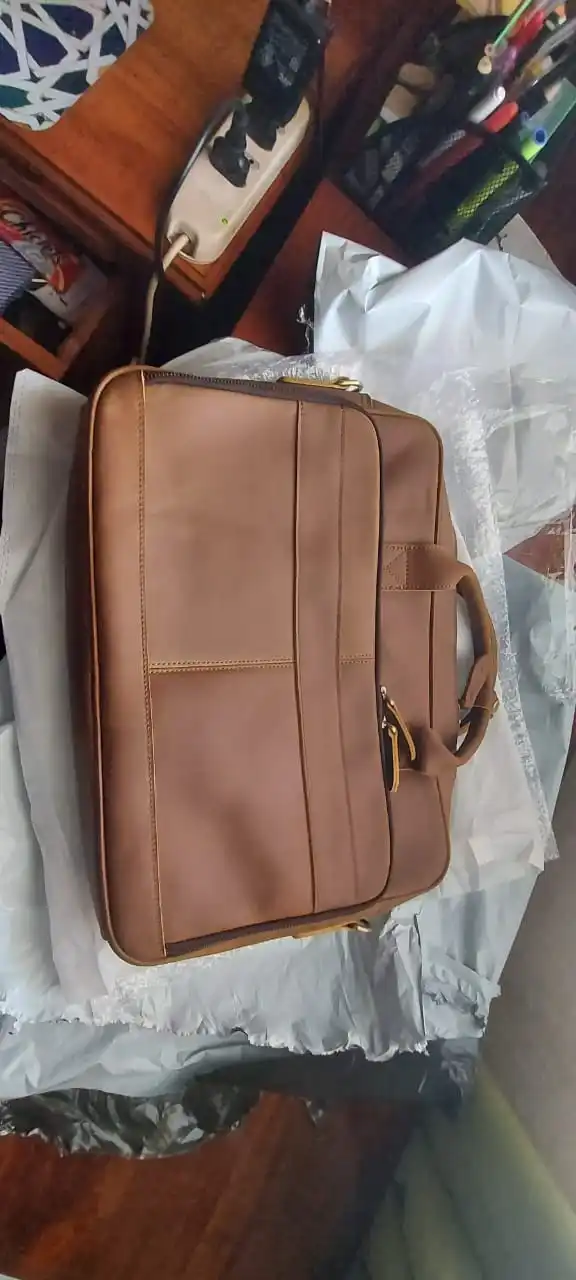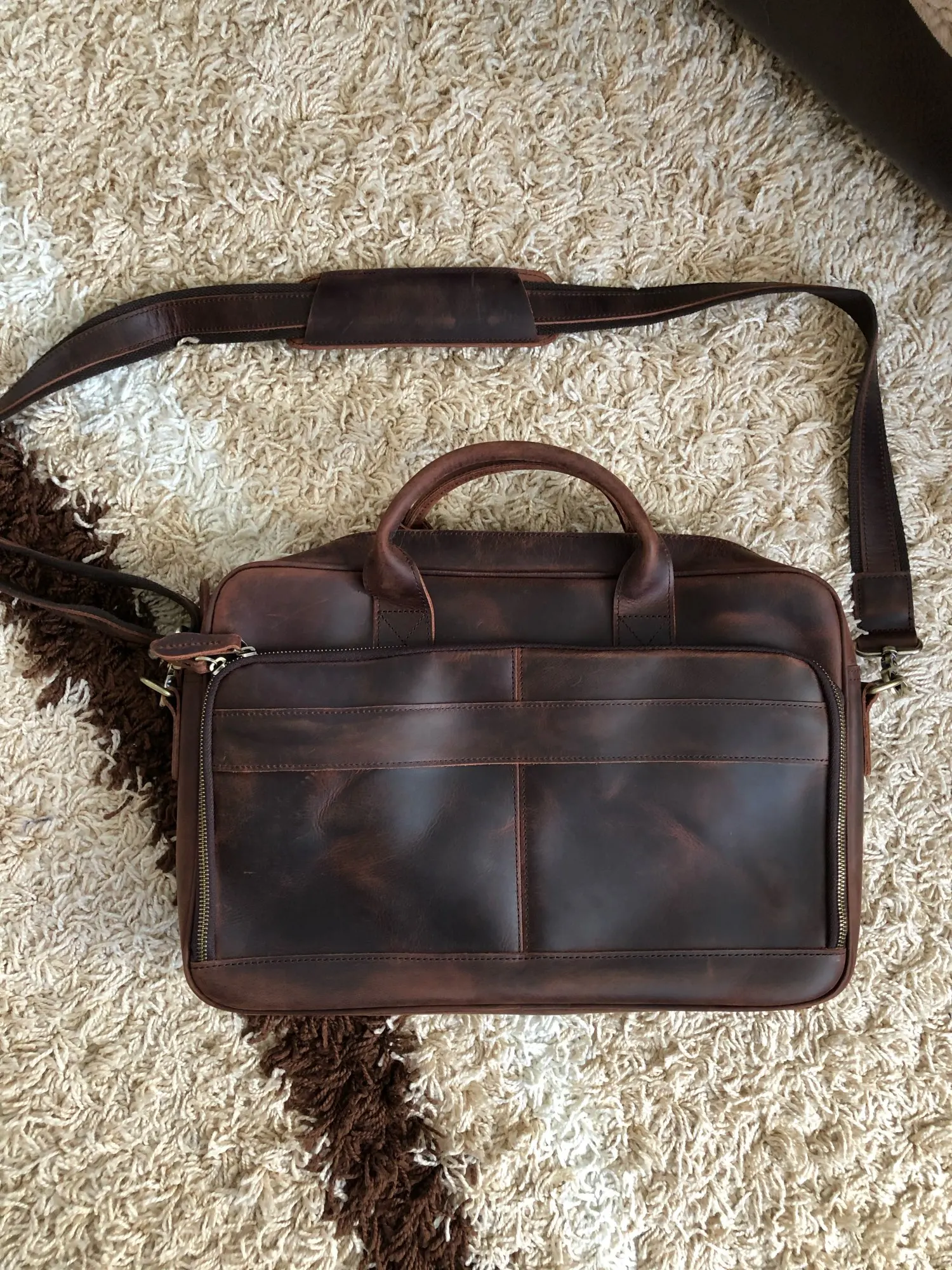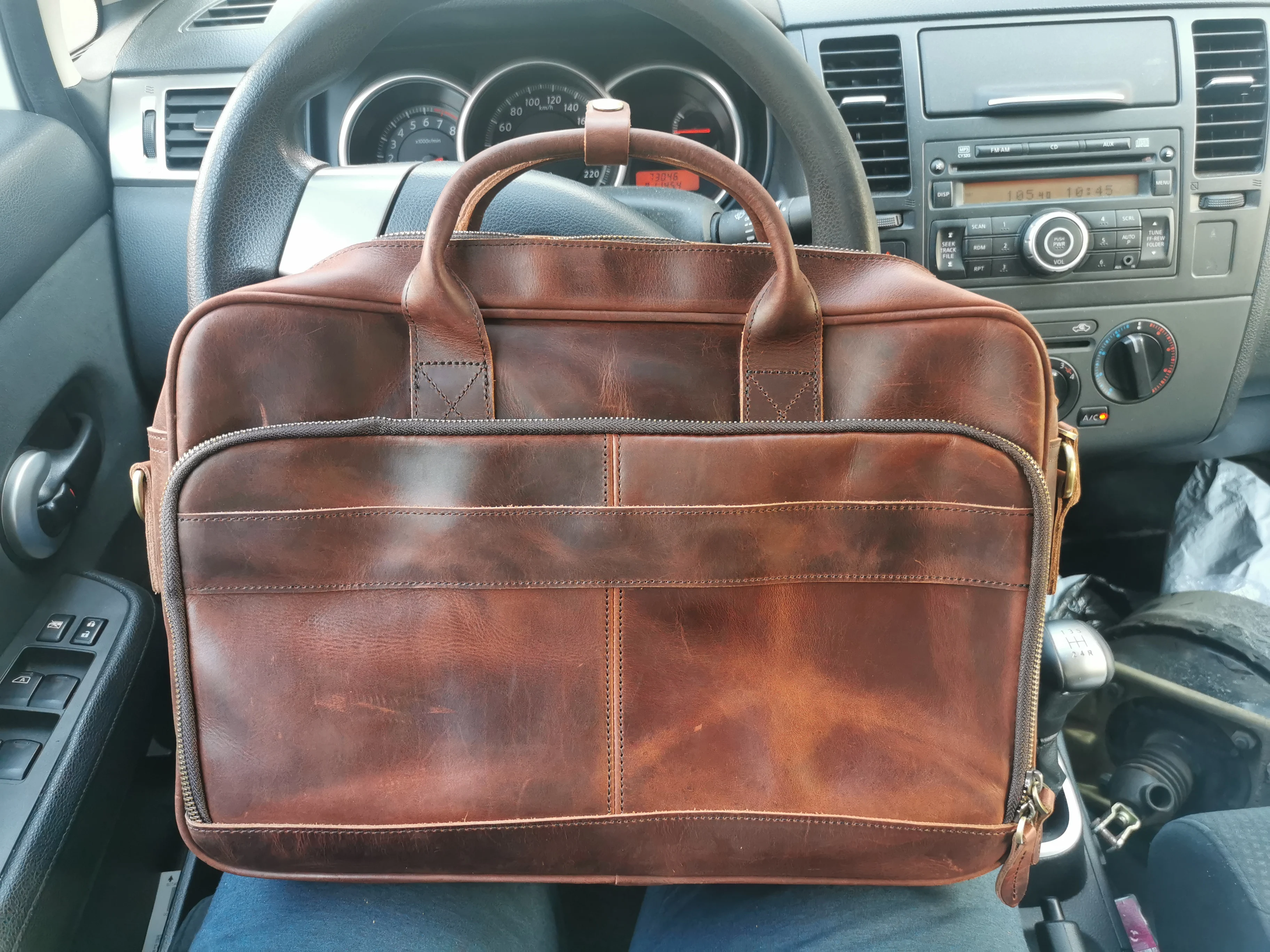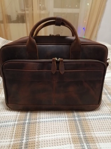 Красивый портфель, Высококачественная кожа. Много карманов для всех вещей, которые вы носите. Я очень доволен этой покупкой, и она пришла вовремя.