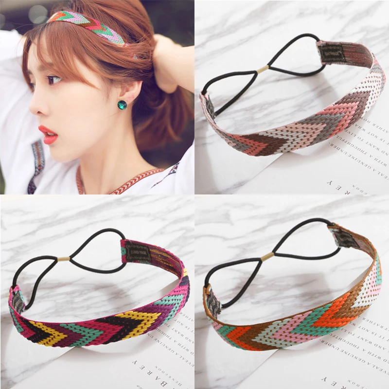 Повязка для волос женская, эластичная, с геометрическим узором, лоскутное изделие, повязка