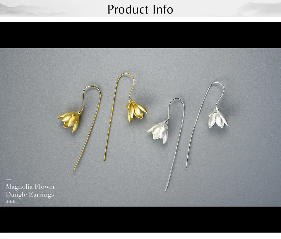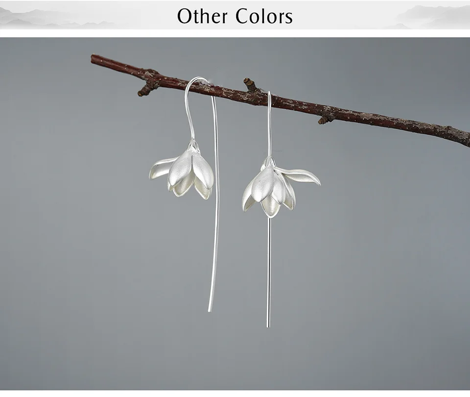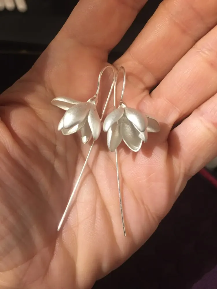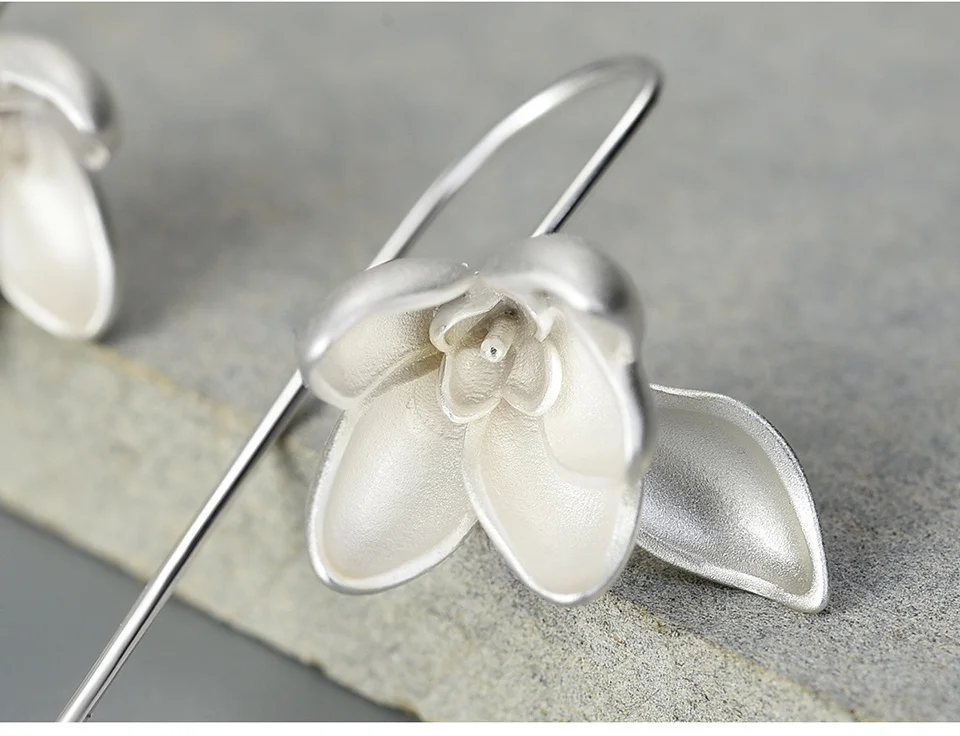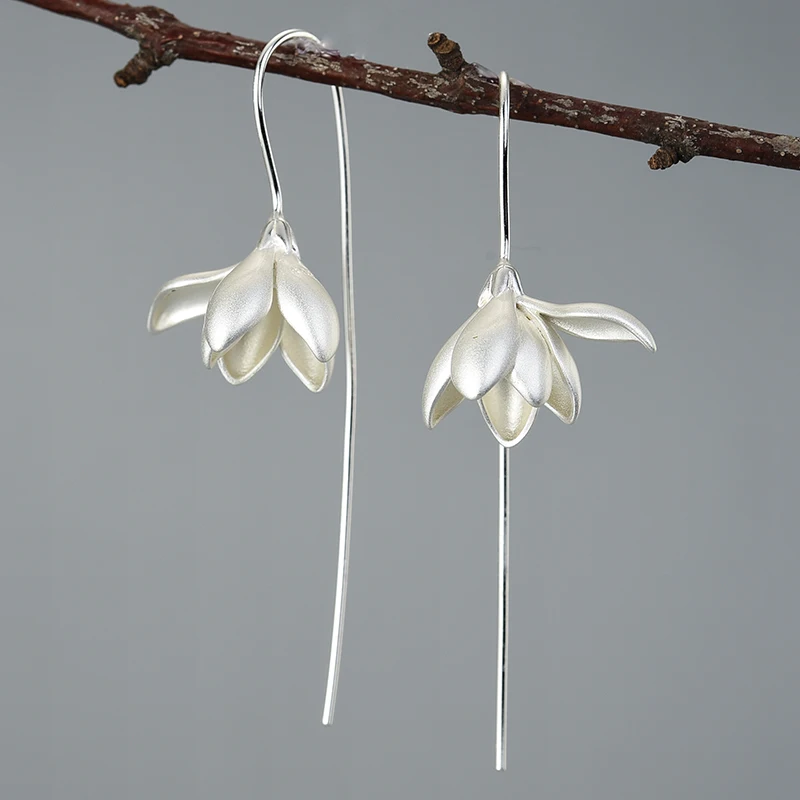 Серьги женские из серебра 925 пробы, с цветком магнолии