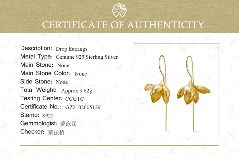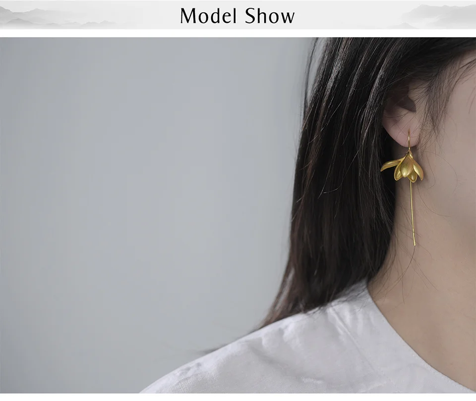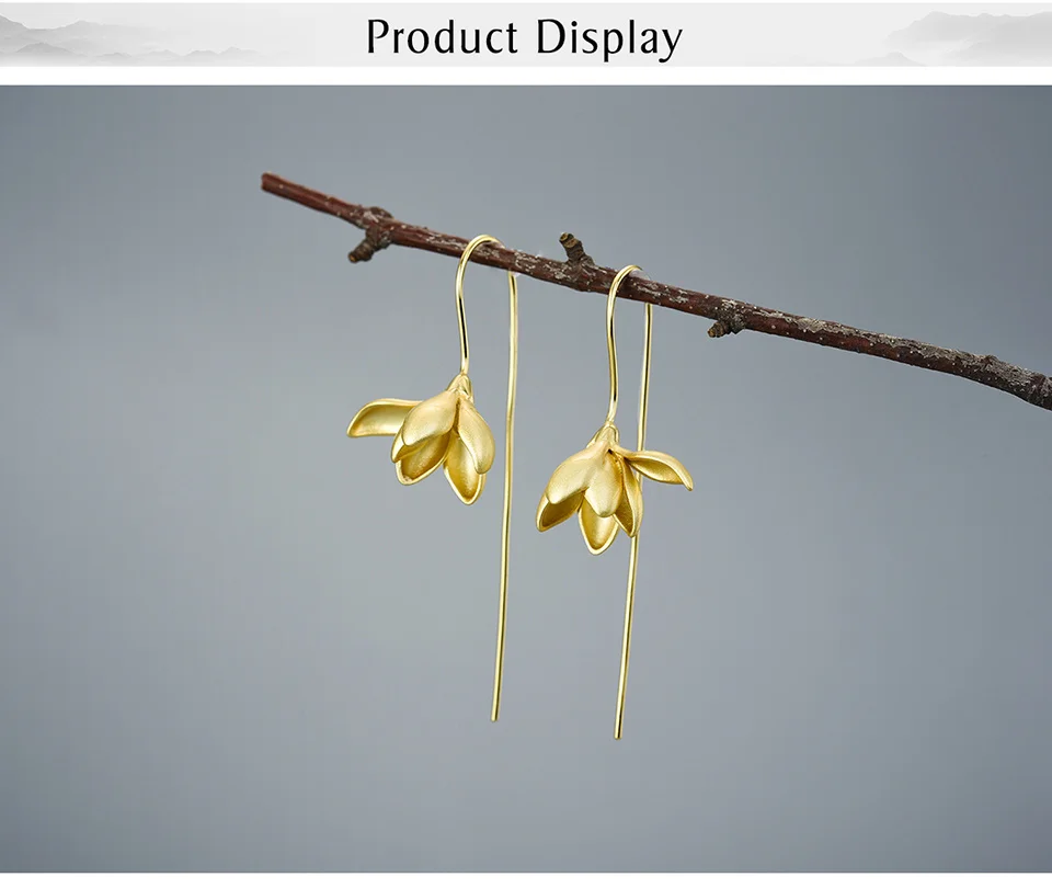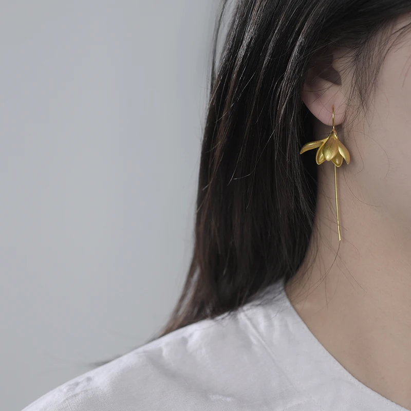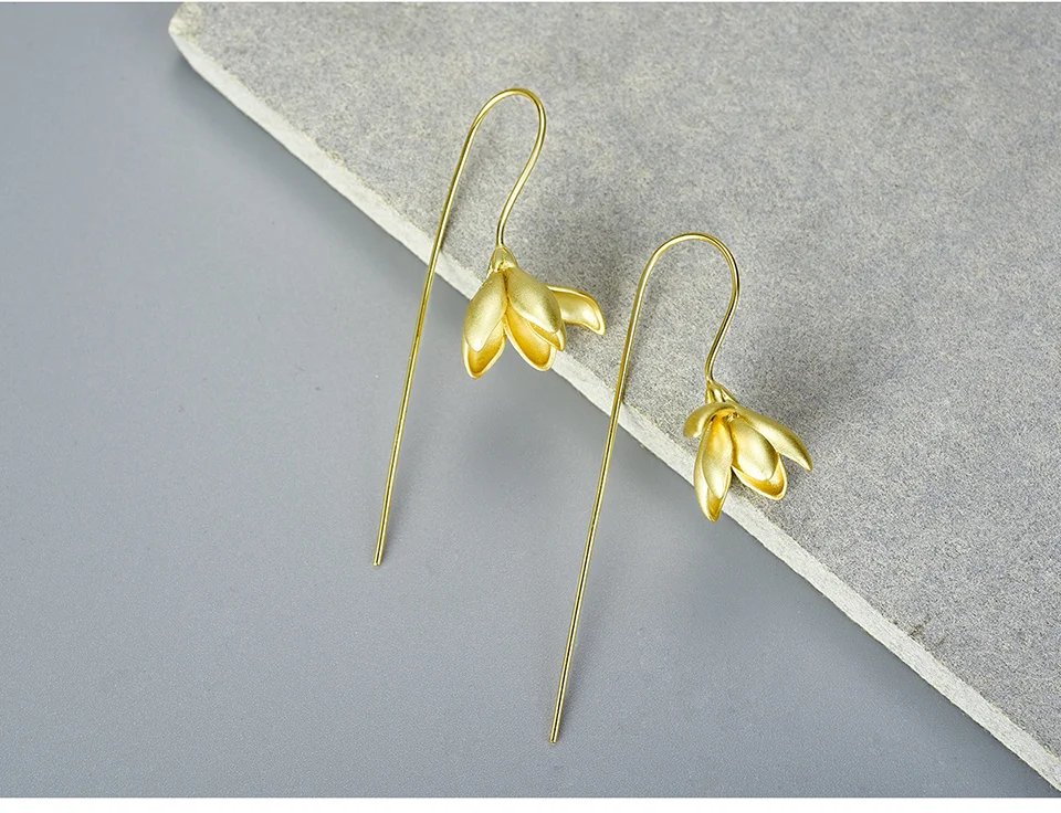 Серьги женские из серебра 925 пробы, с цветком магнолии