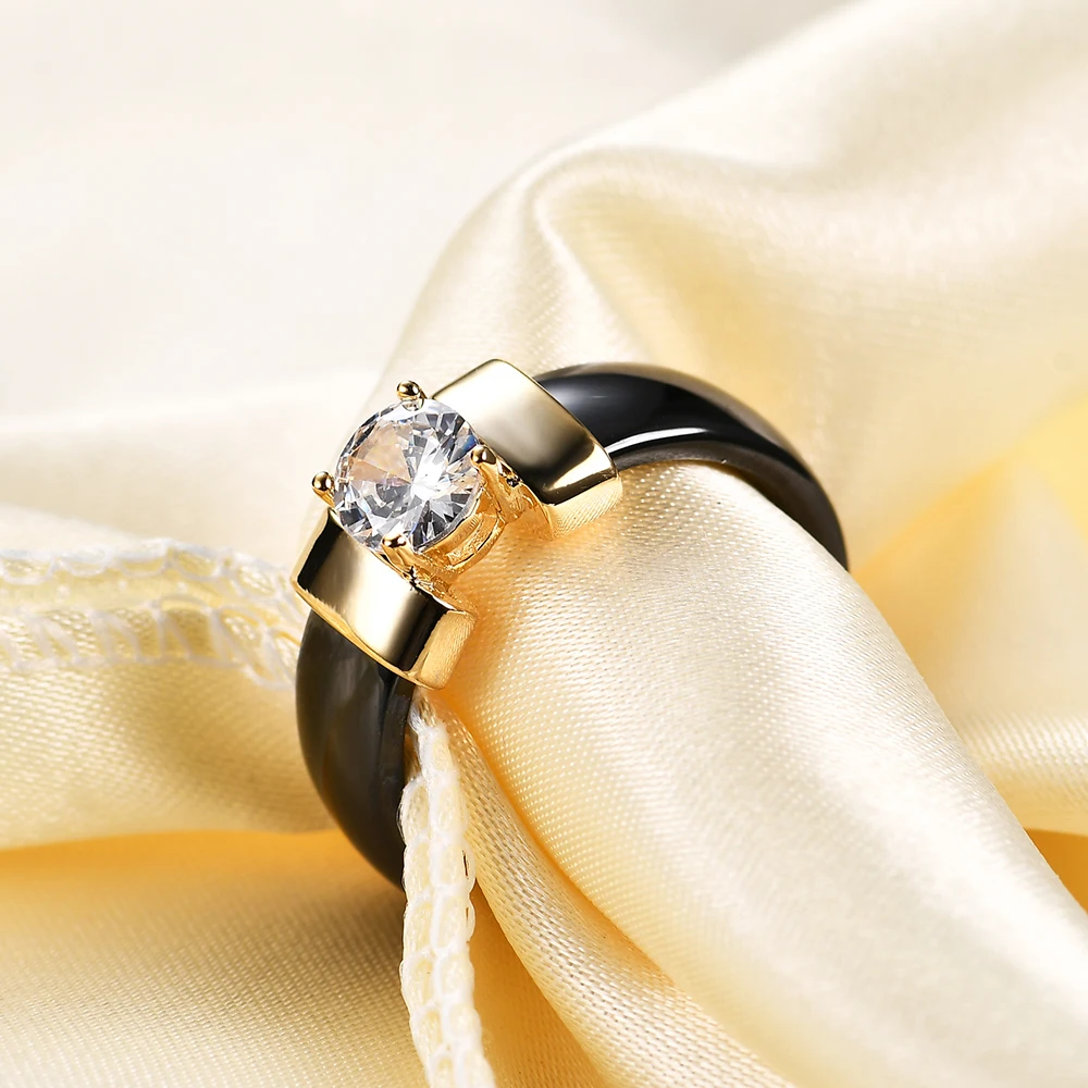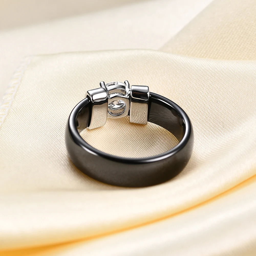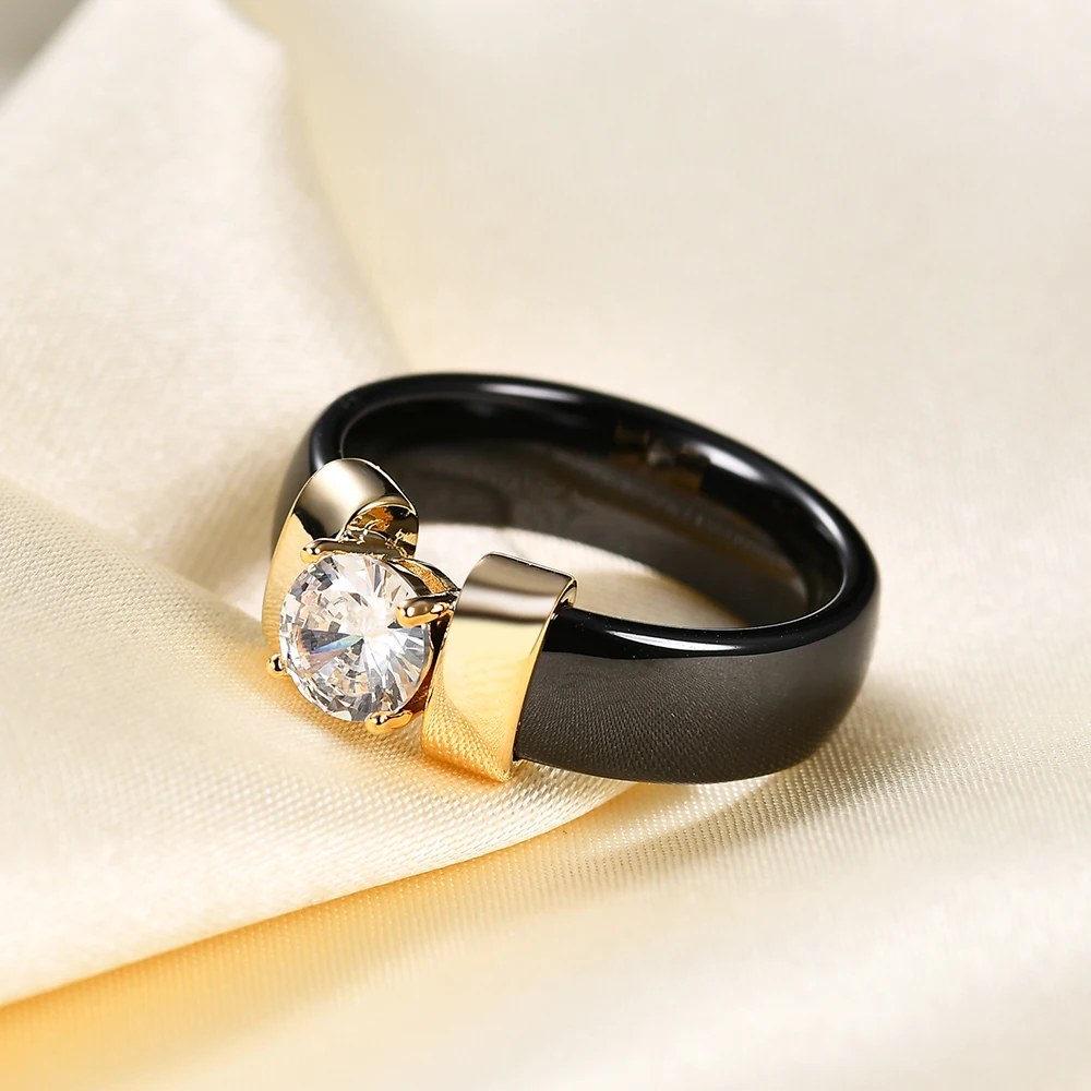 Кольцо обручальное женское, с черным и белым керамическое свадебное кольцо кубическим цирконием